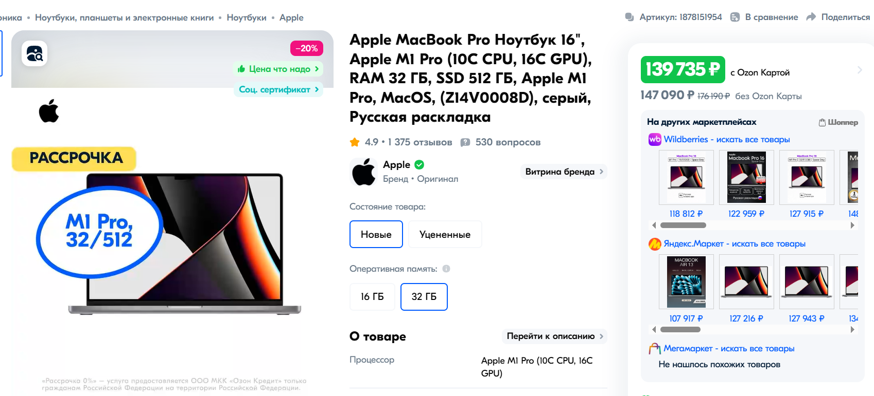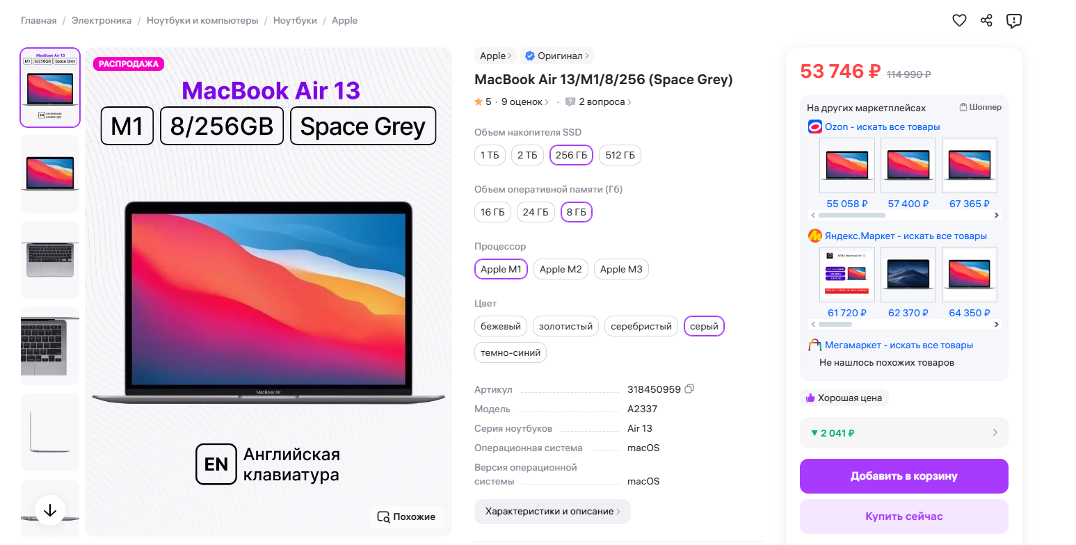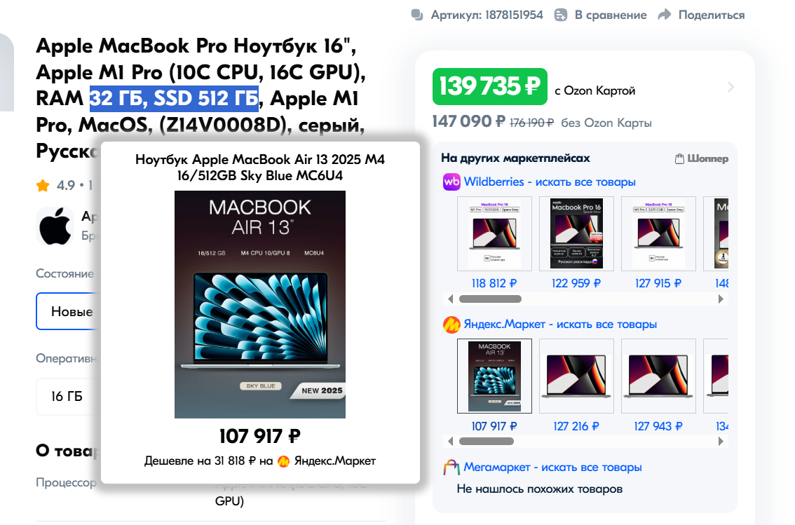 Я в 8 случаях из 10 нахожу аналогичный товар дешевле на другом маркетплейсе. Иногда на соточку, иногда на пару тысяч - в любом случае приятно :) Думаю собрать статистику и написать посты про "честные" скидки на МП, про то где выгоднее покупать разные категории товаров и др.