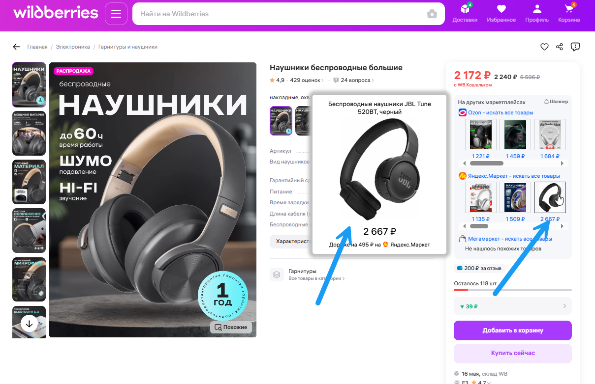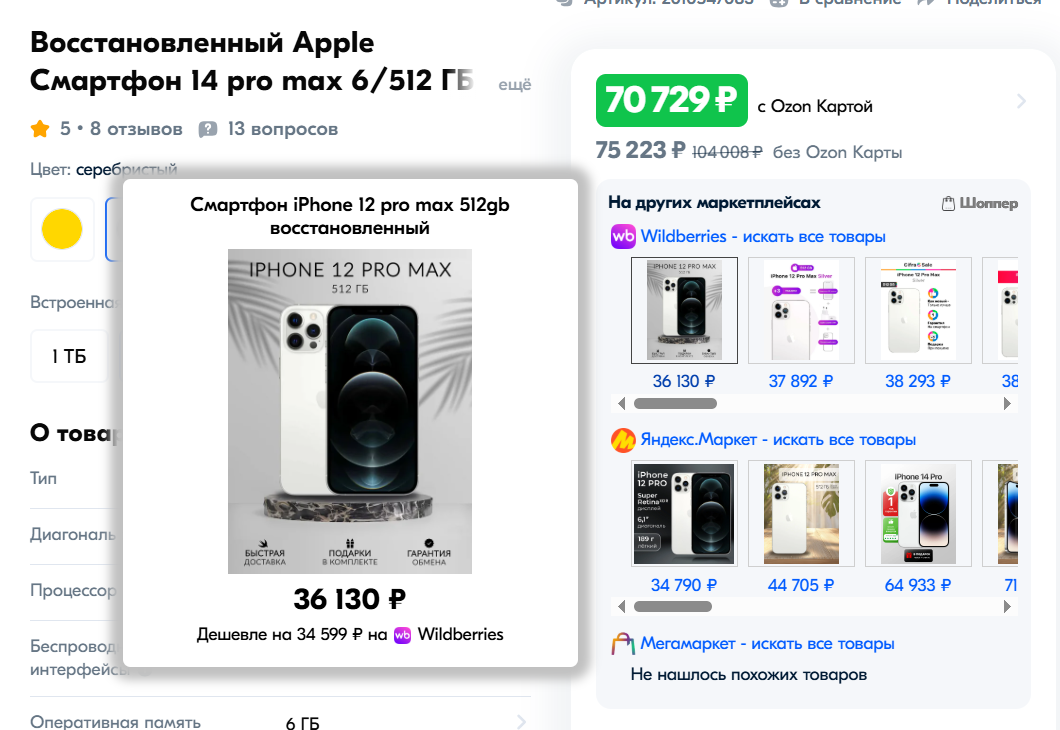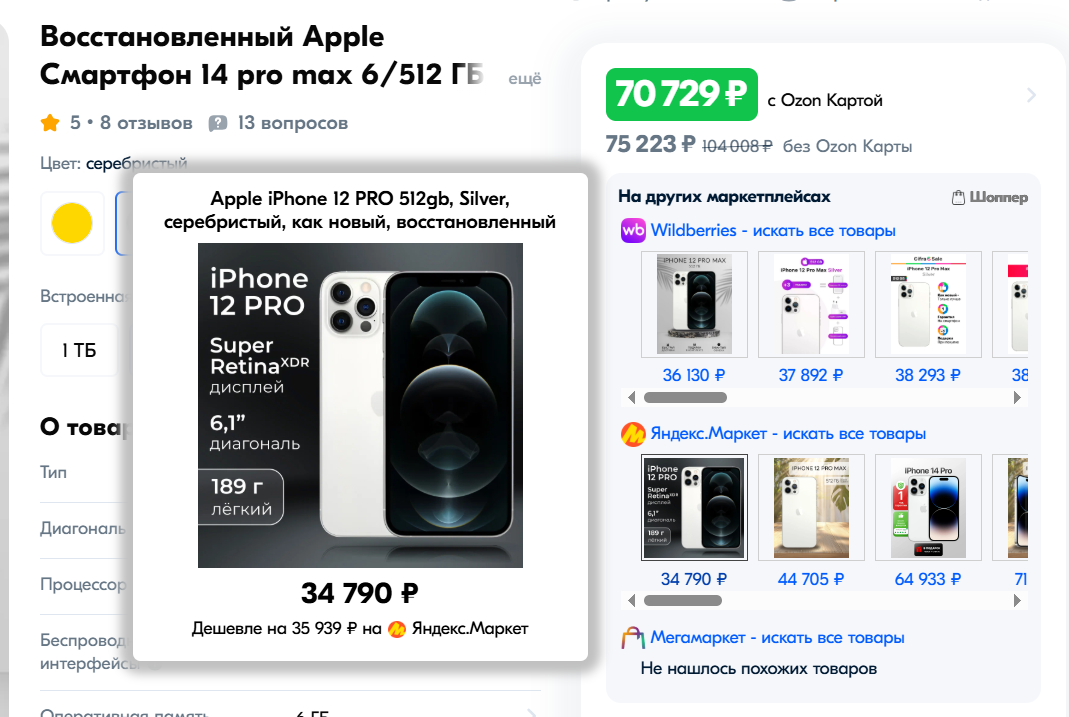 Просто открываете любой товар на WB/Ozon/ЯМ/Мегамаркет/Детский мир/Петрович - и под ценой товара будет топ таких же (или похожих) товаров на других маркетплейсах, отсортированных по цене