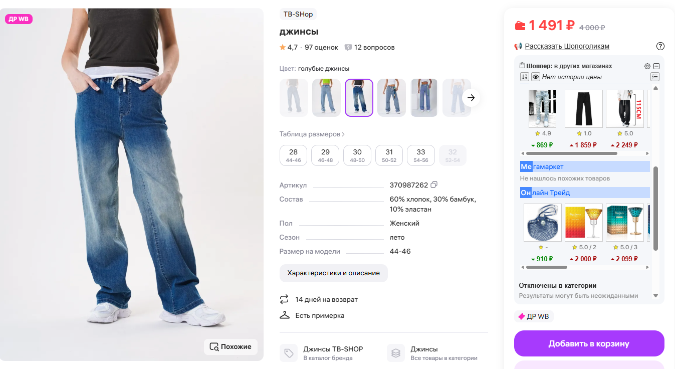 Я делаю бесплатное расширение для браузера Шоппер: оно показывает на карточках товаров Wildberries/Ozon/Яндекс.Маркет/др. результаты поиска того же товара в других магазинах.