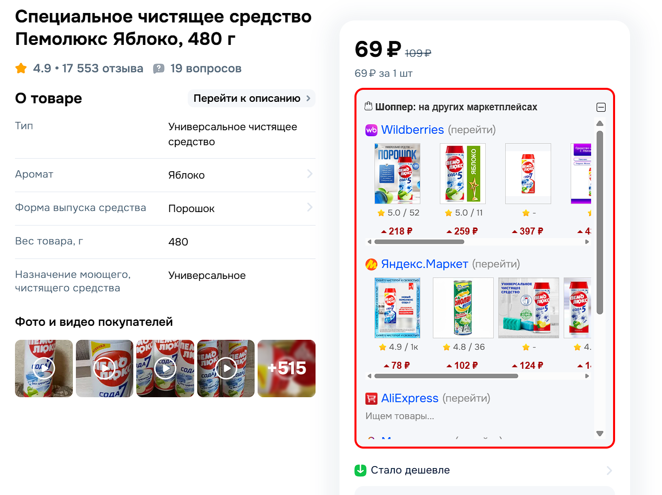 Месяц назад я опубликовал пост про Шоппер: мое бесплатное расширение для браузера для ленивых шопоголиков. Оно показывает в карточках товаров Wildberries/Ozon/Яндекс.Маркет/др. результаты поиска того же товара в других магазинах.