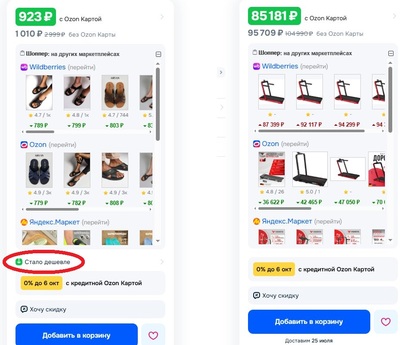 Случился редизайн чтобы было поудобнее да покрасивше: раскрасил цены в зеленый/красный/черный, добавил возможность по клику искать на маркетплейсах, которые скрыты в текущий категории