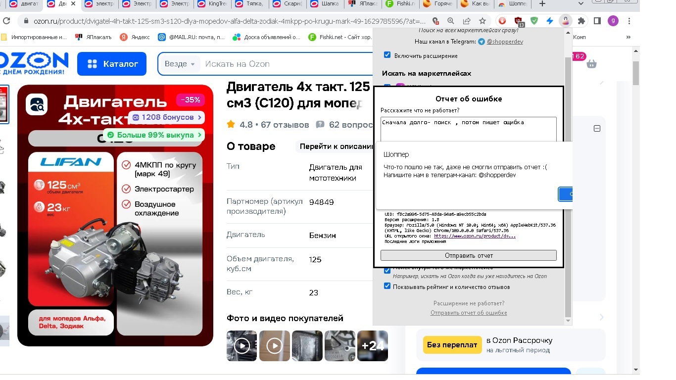 Можно отправить отчет об ошибке разработчику (т.е. мне) прямо из меню расширения, не подписываясь ни на какие левые телеграм-каналы