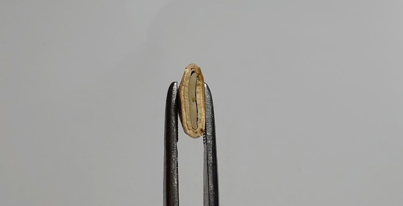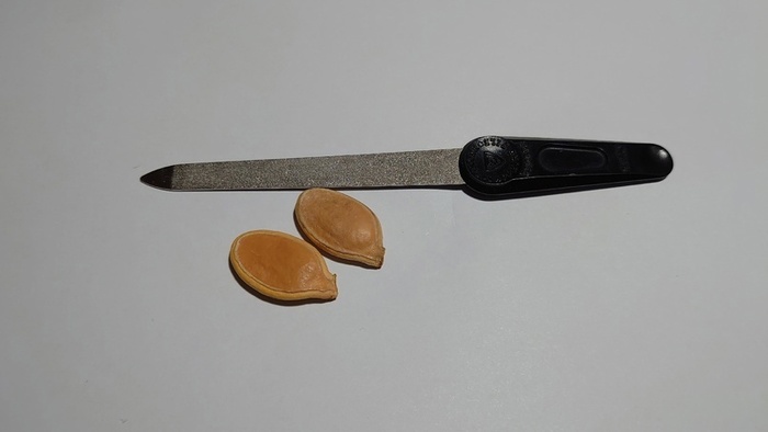 Берем пилку и начинаем шлифовать семечко по бокам. Примерно до такого состояния: