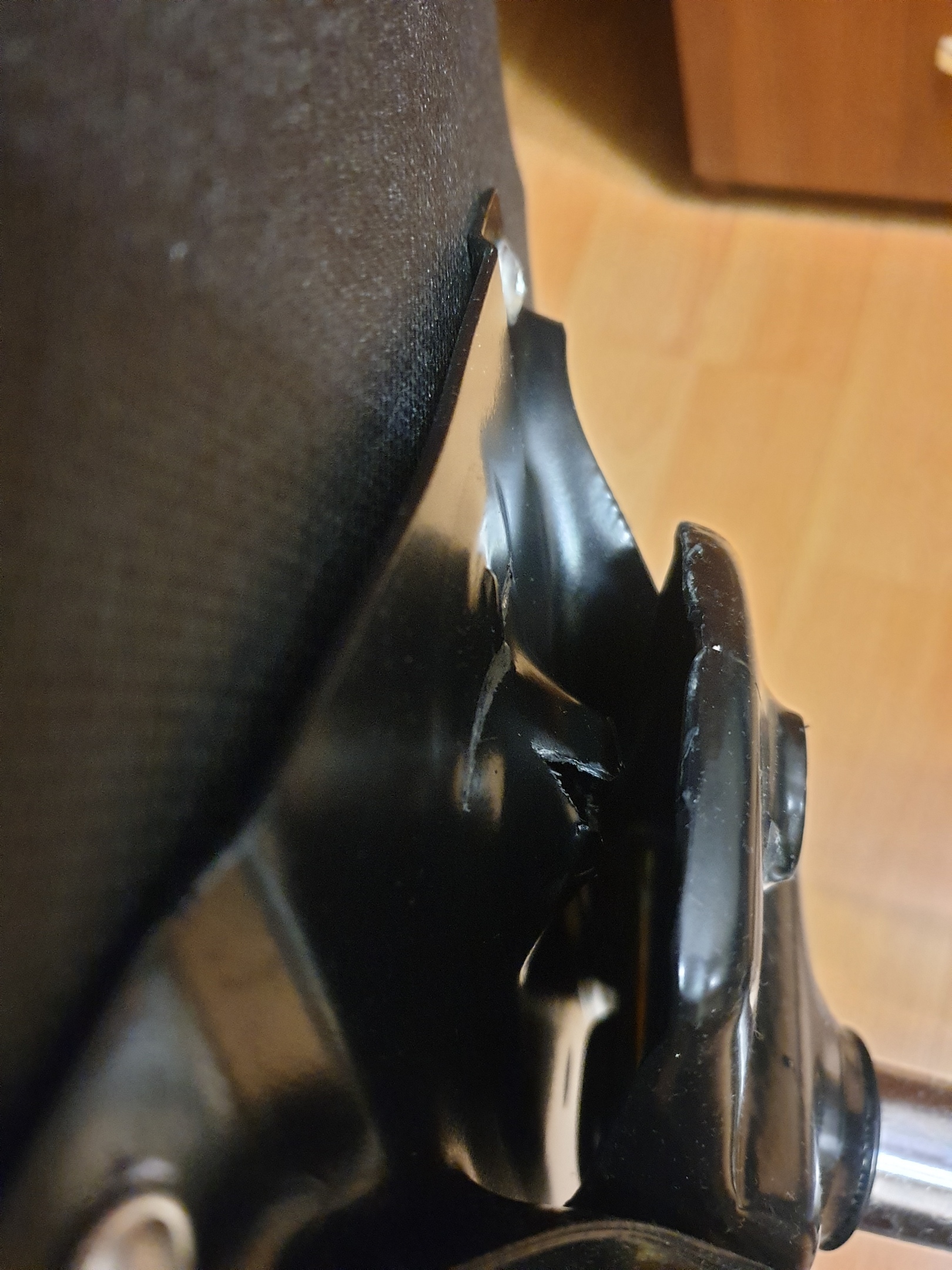 Заявленный срок службы стула 5 лет, верой и правдой служил 2 года. Максимальный допустимый вес 120 кг. Мой вес 80 кг. Написал производителю на почту, приложил фото, думал может ответят для приличия, что учтем это. Но ответа ждал неделю, не дождался. Неприятно, однако. Ну и фото для понятия произошедшего. Видно, что в месте крепления механизма железо просто не выдержало и его разорвало. А ведь кресло очень удобное, но без качения сидеть ровно на нем теперь не в кайф :)