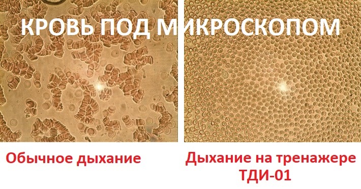 А на картинке справа кровь после 5-ти минут дыхания на тренажере Фролова ТДИ-01.