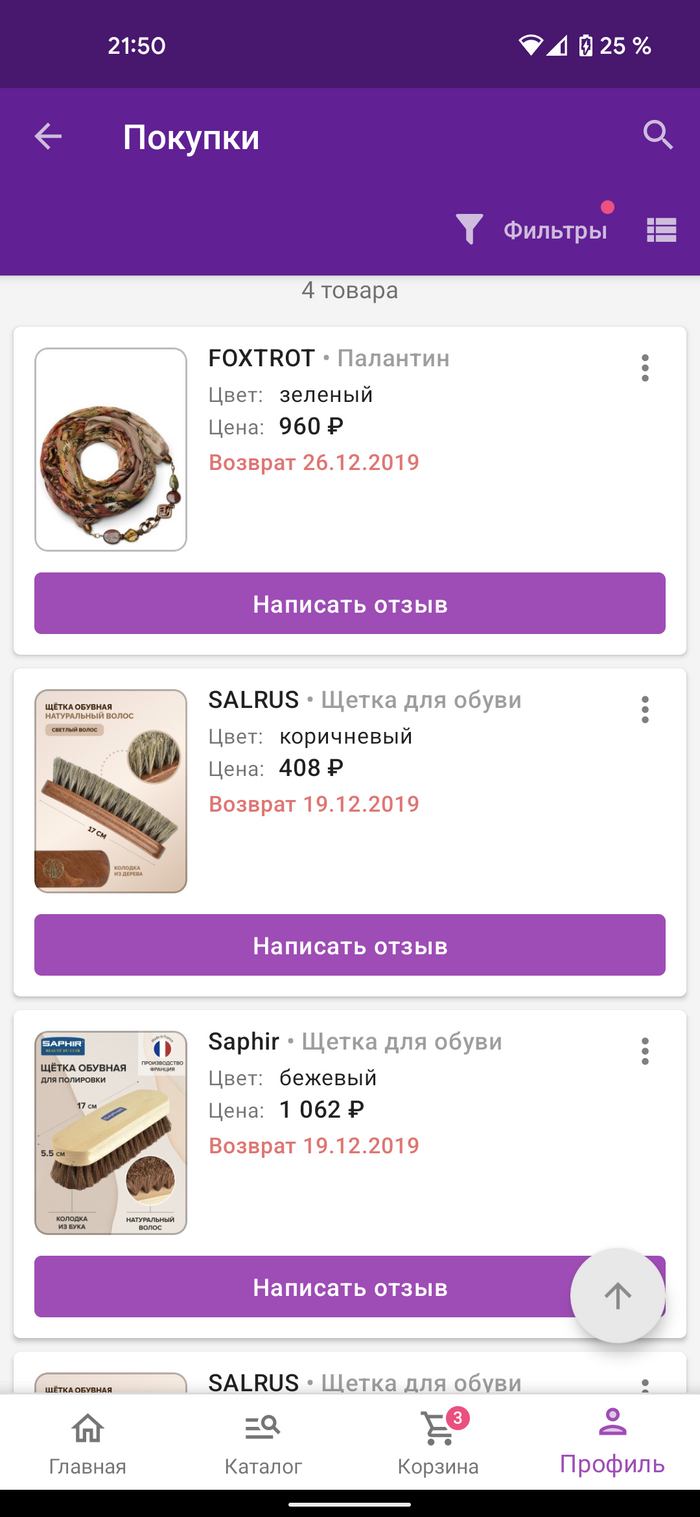 По данному фильтру видно, что за всё время было возвращено 4 товара.