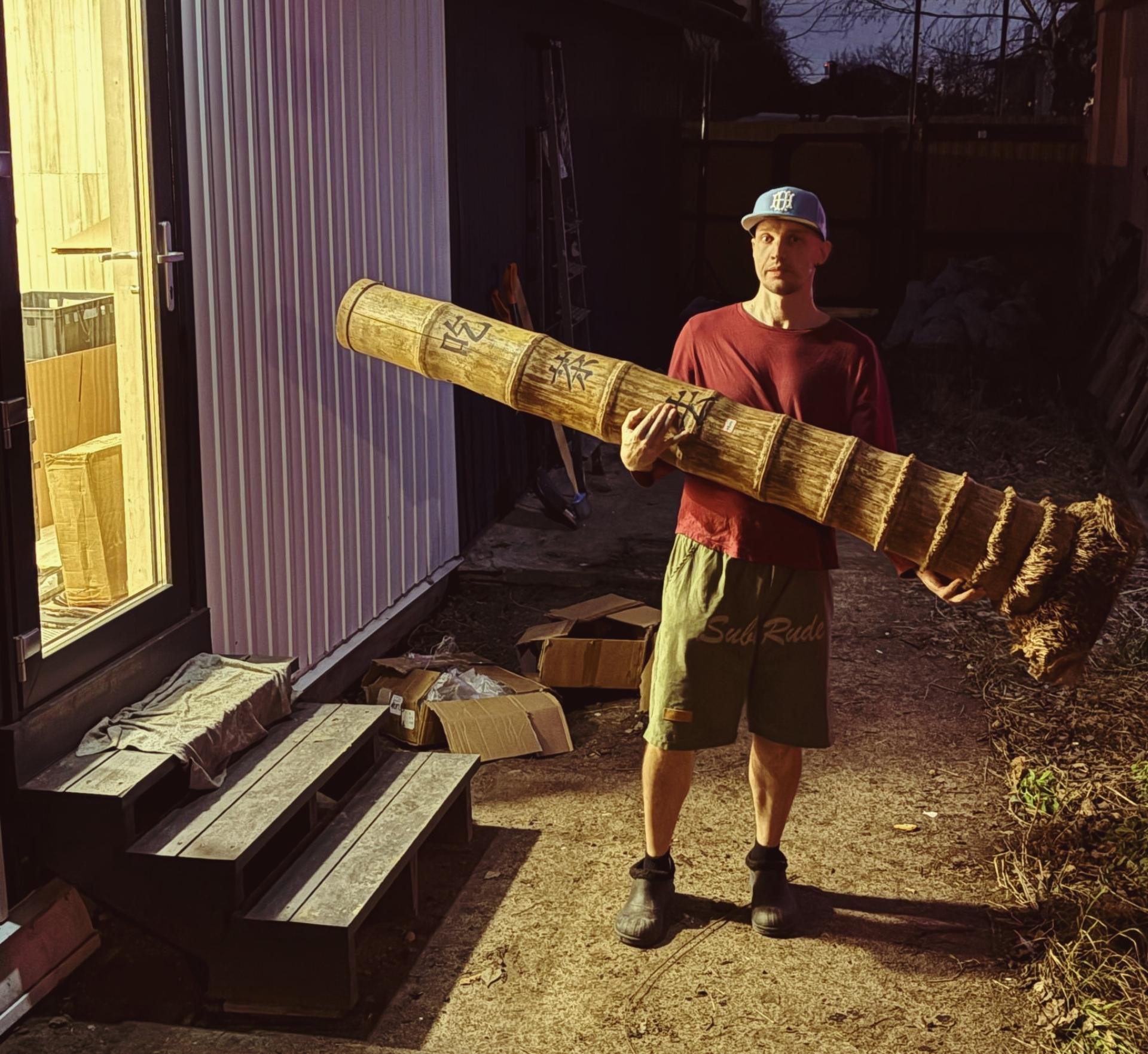 Бамбуки полностью набитые шу пуэром (такое только у психа как у меня бывает) - было решено переселить из дома на новый влажный склад, но помогать мне никто не захотел: "ты ж чего это, зря в зал ходишь? Вот и покажи, чему научился".