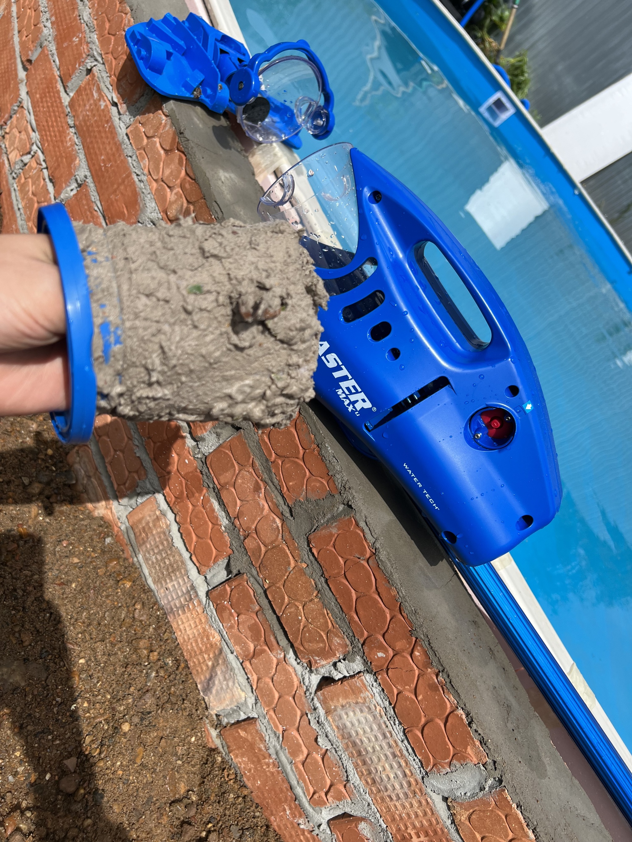 Пылесос. Можно подключиться к фильтру и использовать его как пылесос, но это увеличит количество прочисток. Хотел взять робота но мне сказали что по моему дну он ездить не будет. В итоге взял ручной на аккумуляторе. Утром собрал его и пошел убирать мусор который успел выпасть на дно и охренел. Оказывается бассейн намного ярче чем я думал. Из за того что я поздно подключил фильтр ил выпал в осадок и все дно было покрыто его ровным слоем.