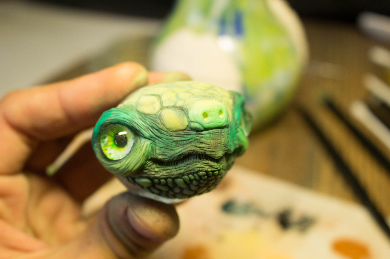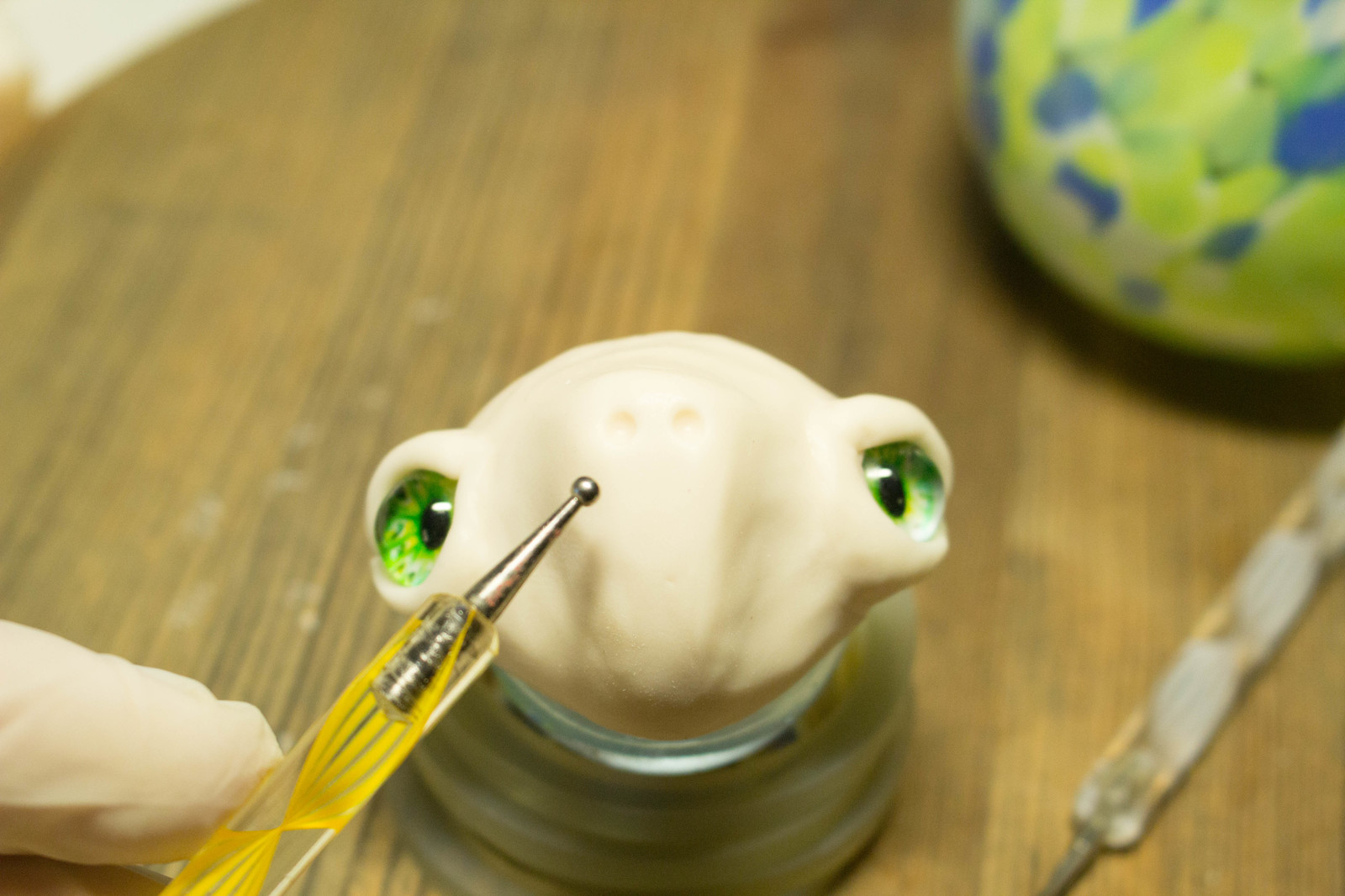 6. Разными инструментами выдавливаю будущие ноздри и пасть