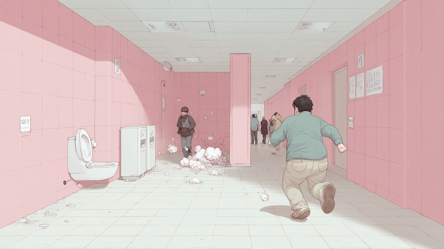 Но времени на поиски уже не было. Мой сфинктер перешёл в режим экстренного реагирования. Знаете эту панику, когда вы понимаете, что вот-вот обосрётесь? Это даже не страх, это какой-то первобытный ужас. Пещерный человек внутри тебя кричит: «БЕЖИМ К КУСТАМ!», но кустов, сука, в центре Сеула нет. Только стеклянные фасады и толпы людей.
