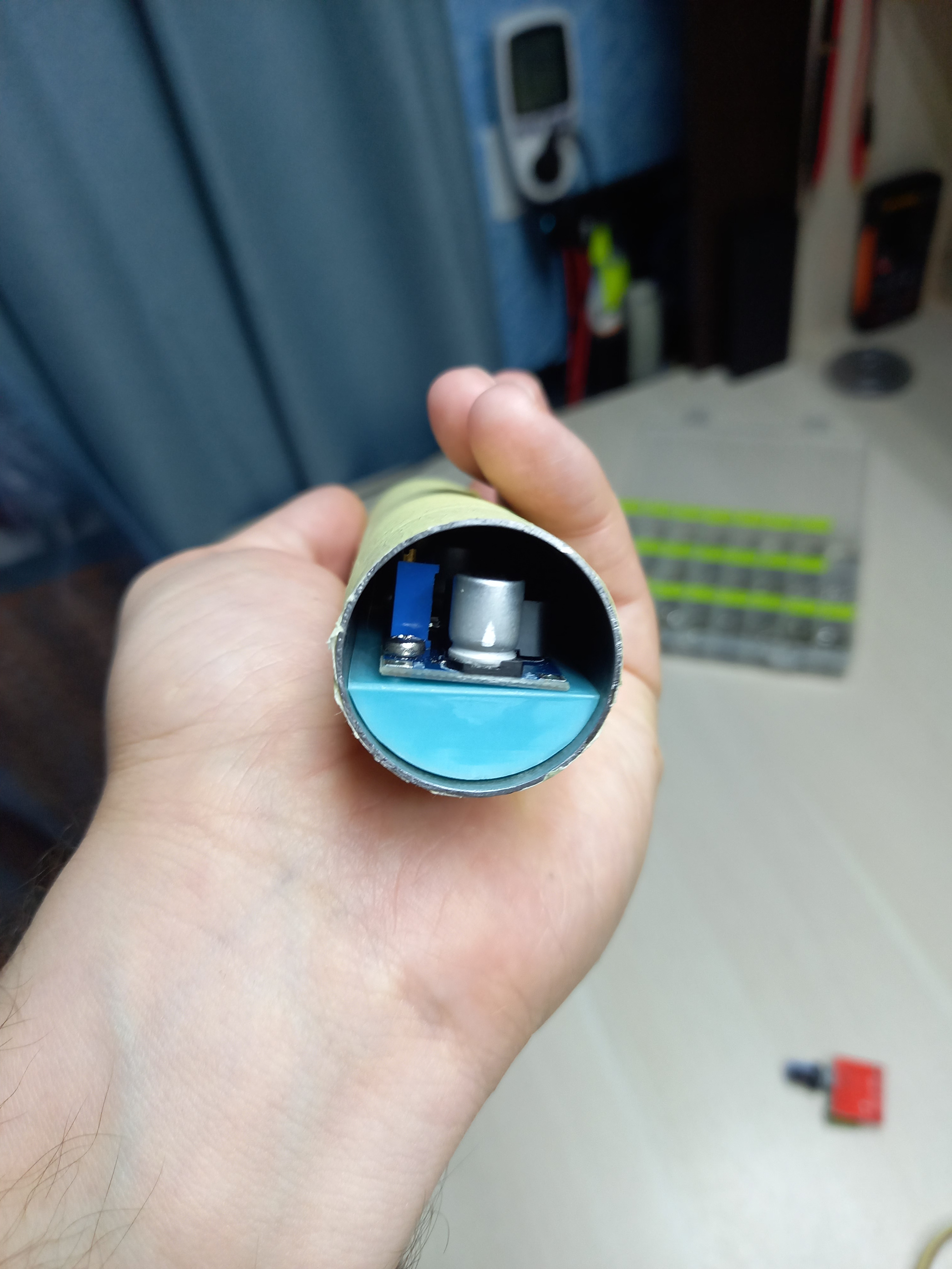 P.S Да я сам мог собрать ШИМ на NE555, но мне лень травить плату, да и все равно ждать другие детали. Трубу обмотал малярным скотчем, чтобы не ушатать покрытие на этапе примерки и сверления отверстий!