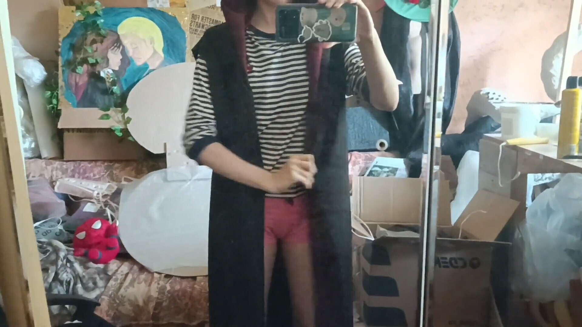 Мантию я начала шить сама, но с первого раза не получилось и я запаниковала. Обратилась к швее, но у нее был завал по работе и она смогла помочь лишь советом. Я распорола мантию с ВБ чтобы получить выкройки. По ним я смогла исправить свои косяки и сделала классную мантию с рукавами. Однако не хватило ткани на капюшон и я заказала ее отдельно