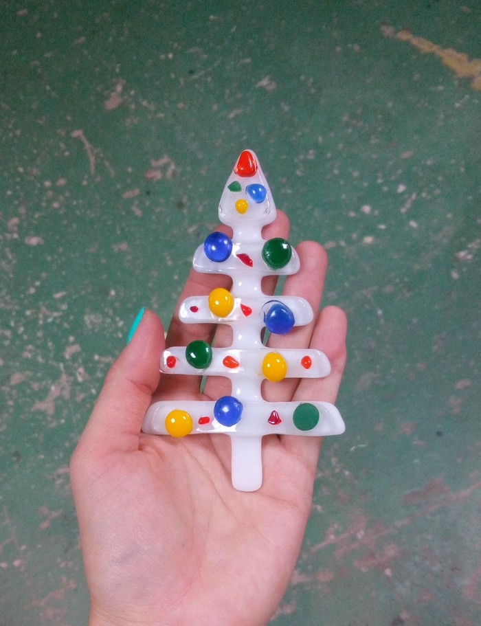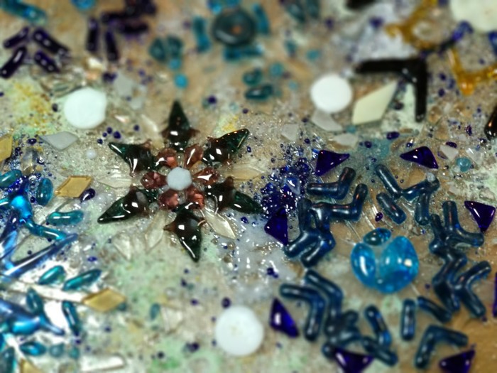 Техника как Вы могли заметить, другая. Называется она Фьюзинг. Сначала режутся детали из стекла для будущей задумки, прихватываютя клеем и отправляются в муфельную печь.