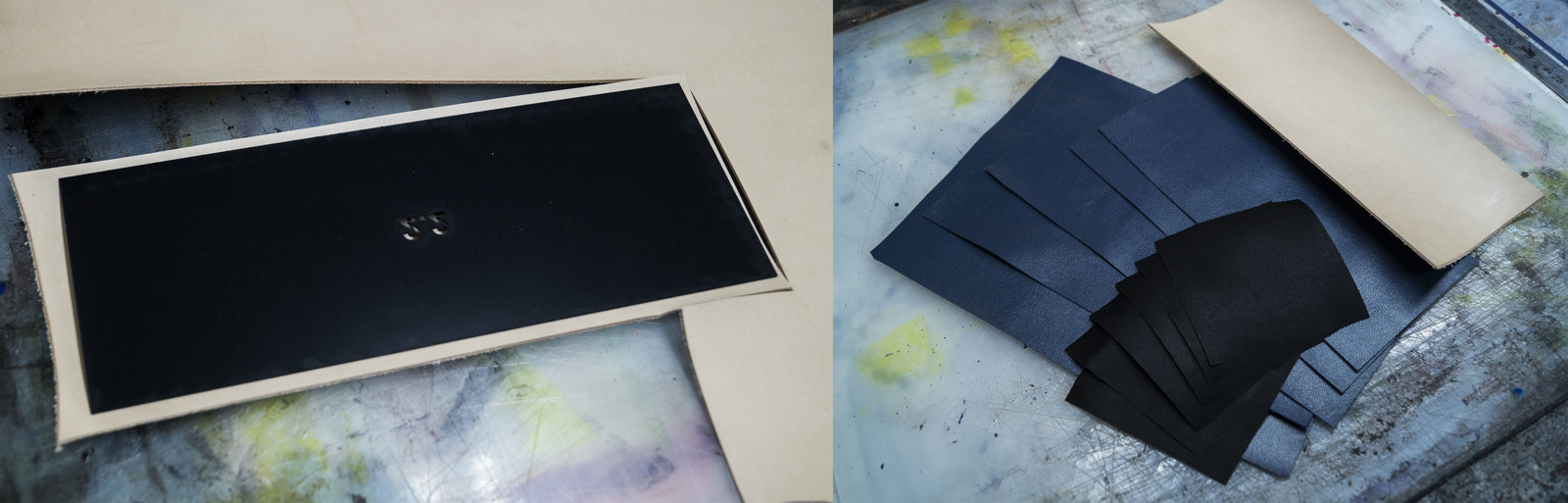Всё начинается с выбора кожи. В данном случае - кожа телёнка растительного дубления и шевро (кожа козы), в качестве материала для кармашков я использую шелк.