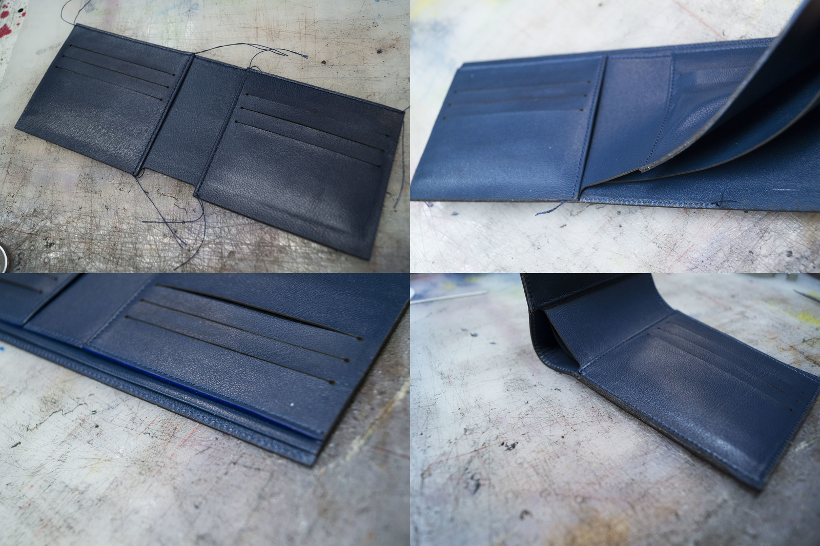 Чтобы изделие было более изящным, приятным на ощупь и более вместительным - необходимо утончить кожу. Я измерил, для вас, изначальную толщину лицевой и подкладочной деталей (1,35 и 1,0 мм соответственно):