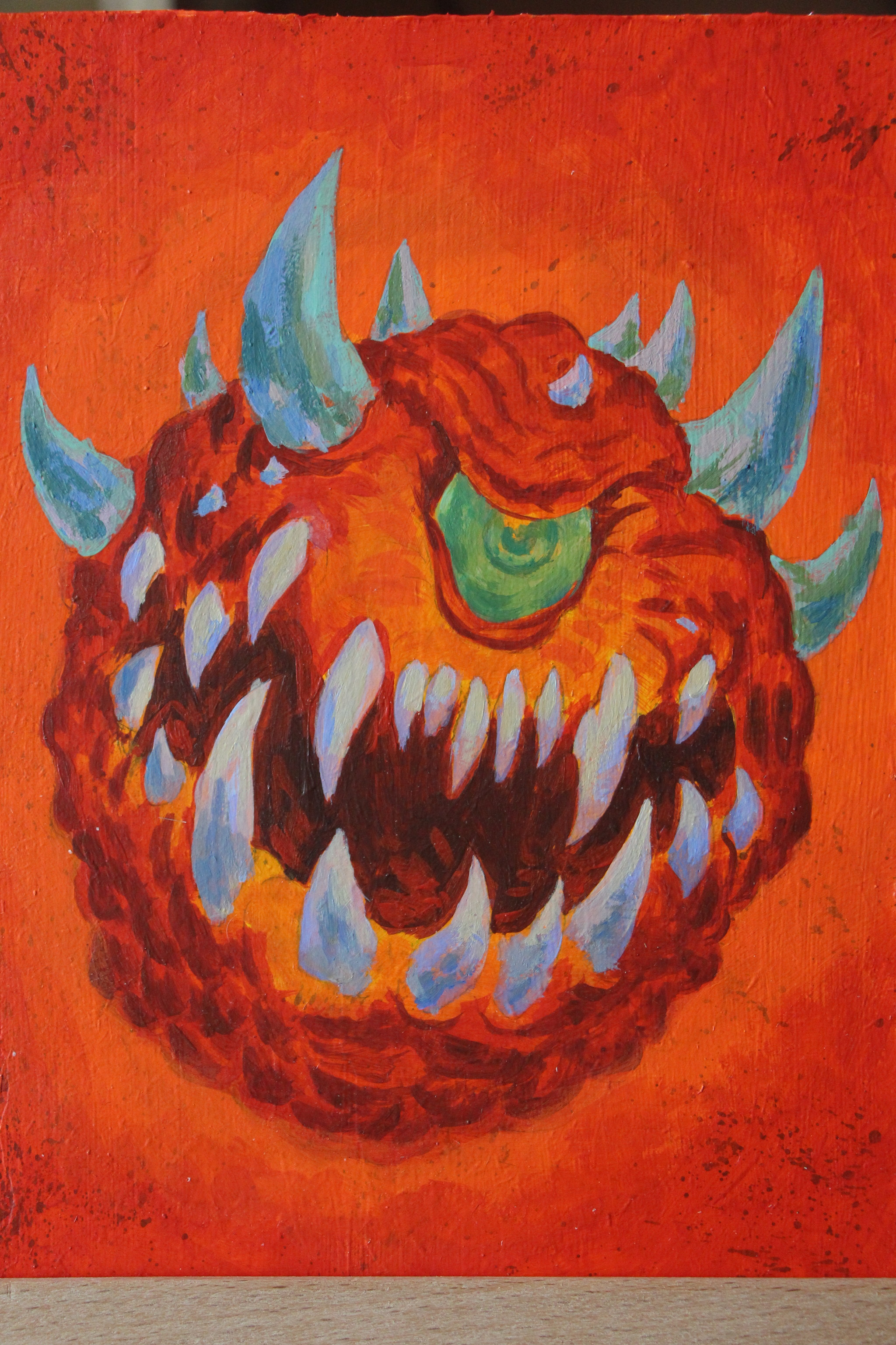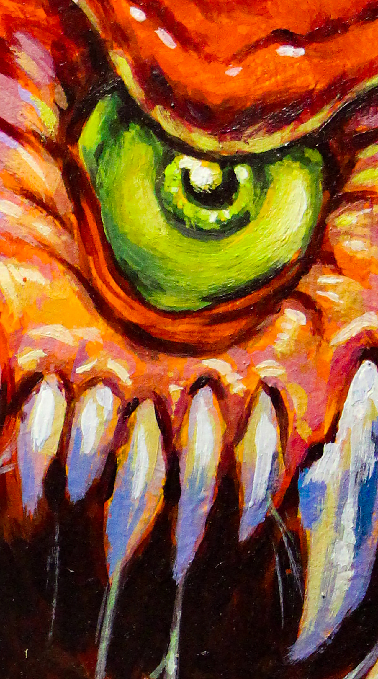 Тут тоже самое что выше, домазываем клыки, рога и глаз. Так же прошелся по фону, пока нету аккуратной прорисовки, добавляем насыщенности и затемняем уголки.