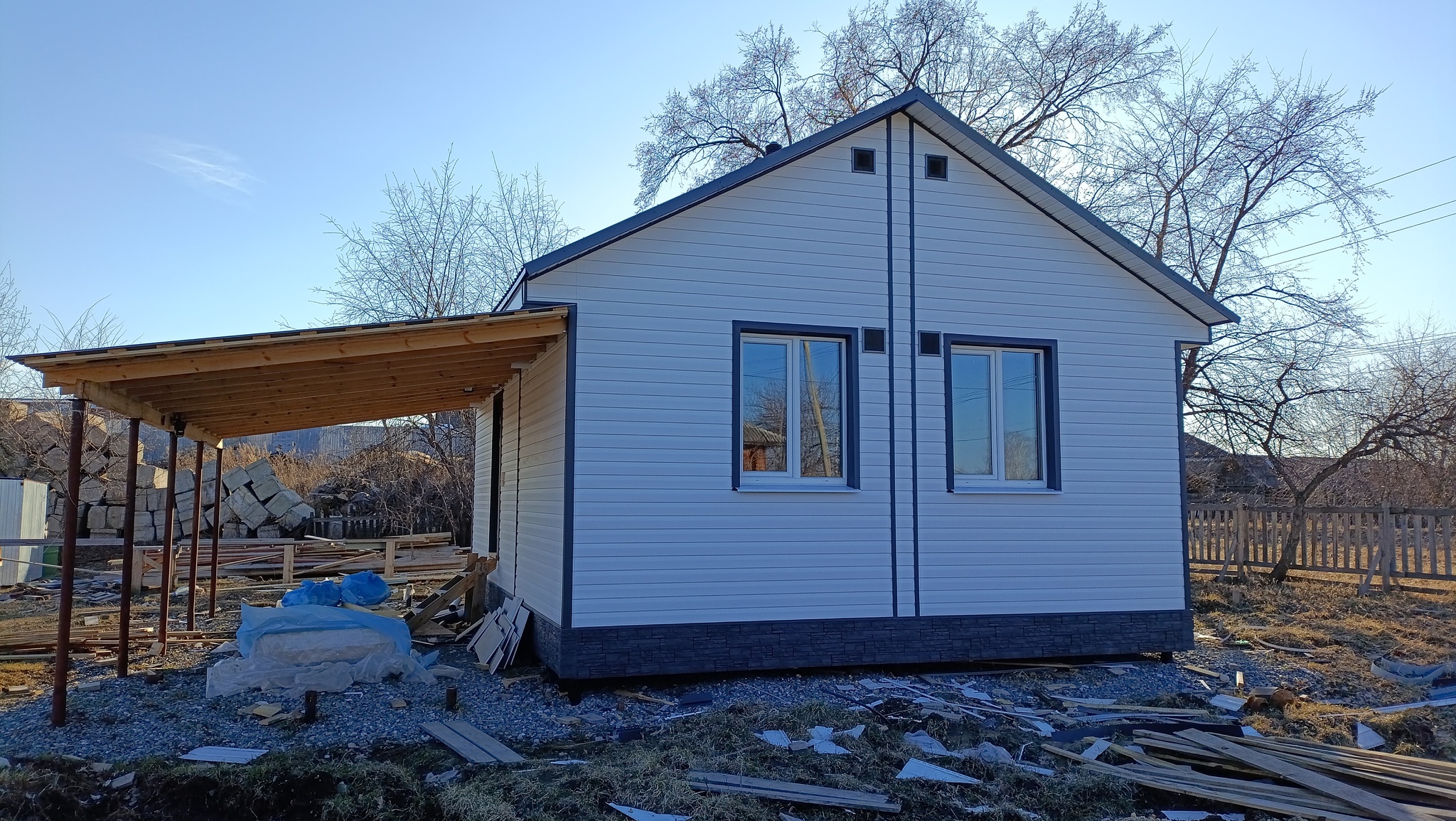 С этой стороны дом выглядит странно. Знакомый когда приехал, сказал что это фигня странная, ни одного окна и дверь. но никто же не знает моей окончательной задумки.