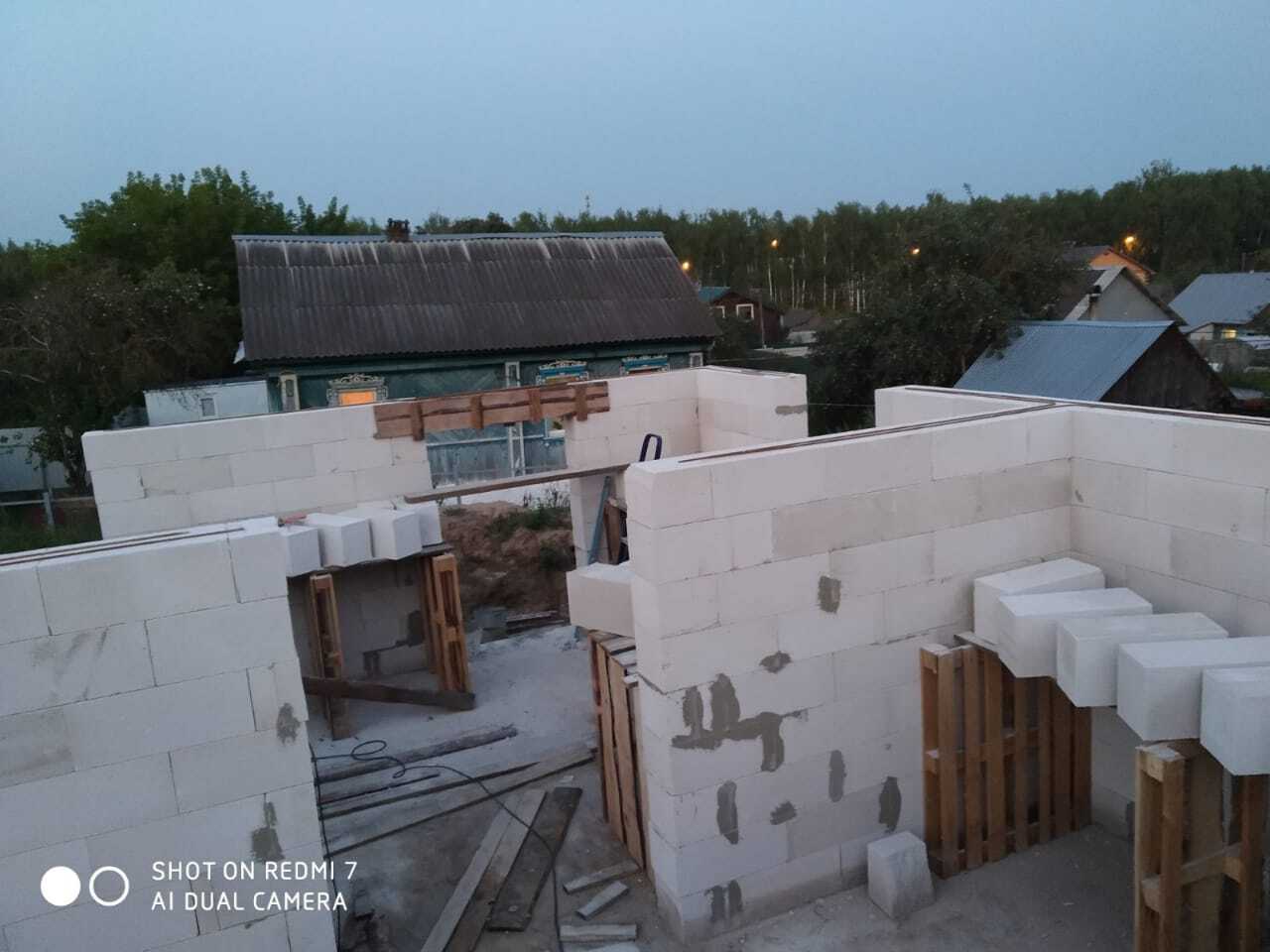 перемычки над окнами не стал делать, вместо этого проложил подпорки, на них положил блоки, склеенные между собой, а мы же помним как держит клей пена. И чтобы совсем точно ничего не рухнуло, наверху в блоках насверлил арматуры под углом. Получалось что над верхними блоками был армопояс, на котором висели надоконные блоки, точнее висел один блок, так как крайние входили в защемление между армопоясом и стеной. Как то коряво написал объяснение, видимо не зря упорно хотят влепить тег Рукожоп.)))
