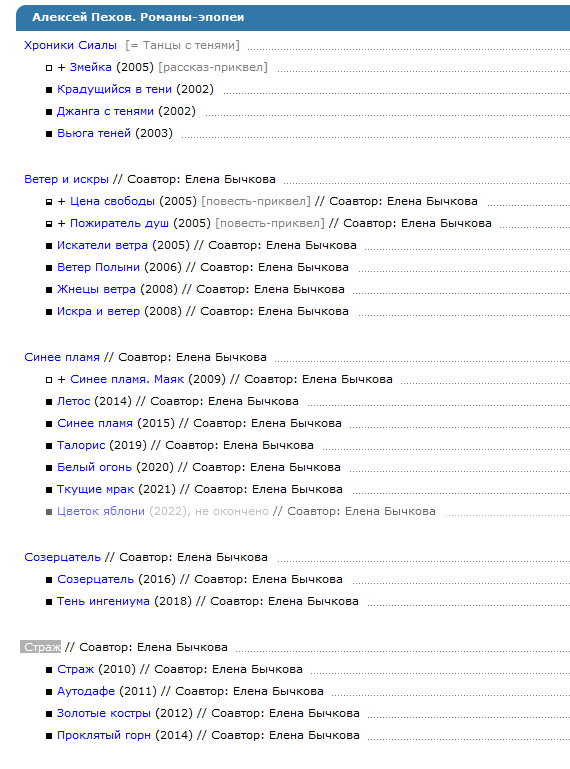 Алексей Пехов все свои работы, кроме Сиалы, писал и пишет в соавторстве. Он не раз говорил об этом в интервью, и что на обложке перестали упоминать супругу для лучших продаж, из-за глупых стереотипов об авторах женщинах. Макс Фрай тоже женщина, но пишет под мужским псевдонимом.