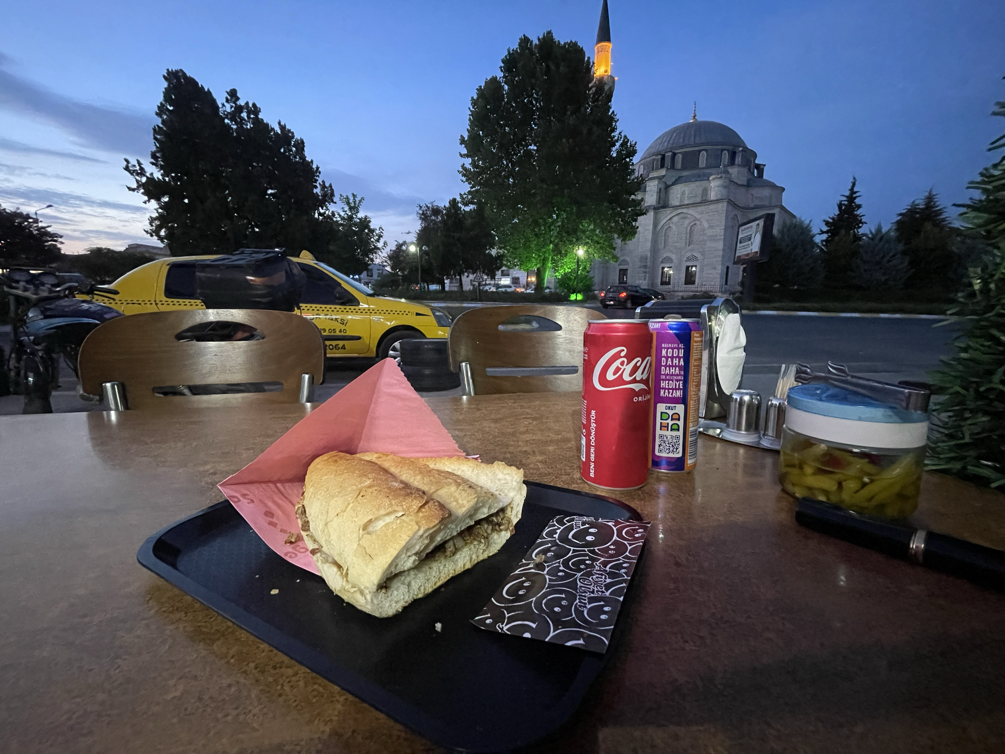 Остановился перекусить. Я так и не смог понять общего принципа работы кафе в Турции. Днём все заполнено. Сидят мужики и гоняют чаи (турецкие мужики пьют чай круглосуточно). А еды нет. Максимум, сделают сэндвич. Вчера с едой мне просто повезло, как выяснилось.