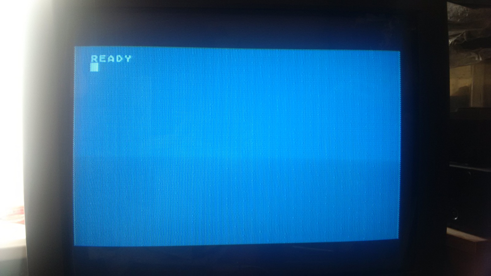 Включаем и вуаля! Голубой экран, READY. Прогоняем тест памяти и убеждаемся, что по крайней мере первые 64 килобайта исправные, вторую половину памяти встроенный тест, к сожалению, проверять не умеет. Научился только в поздних версиях.