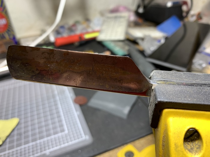Тут предстояло принять решение - делать адский диайвай дальше, или забить и выкинуть. Поковыряв лезвие напильниками, я решил все-таки попробовать, железяка казалось твердой и довольно прилично себя ведущей под абразивами.