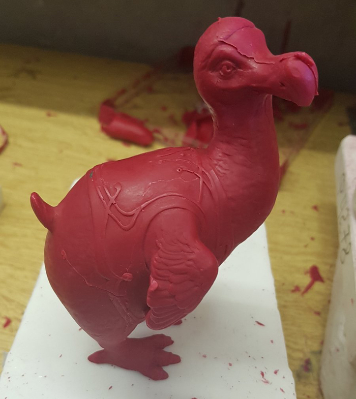 Когда все куски скульптурной группы, включая плинт с узором, долеплены и причёсаны, с них снимаются черновые силиконовые формы. В идеале, надо было делать силикон с верхним жестким кожухом из гипса или пластикрита, но я просто сделала слой силикона потолще. Видок так себе, но всё работает.