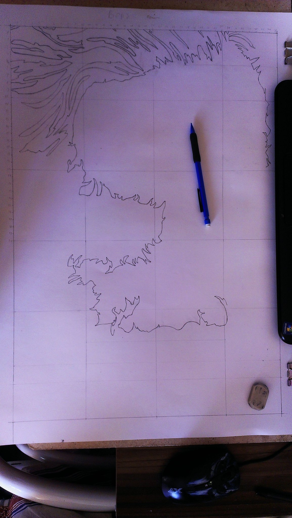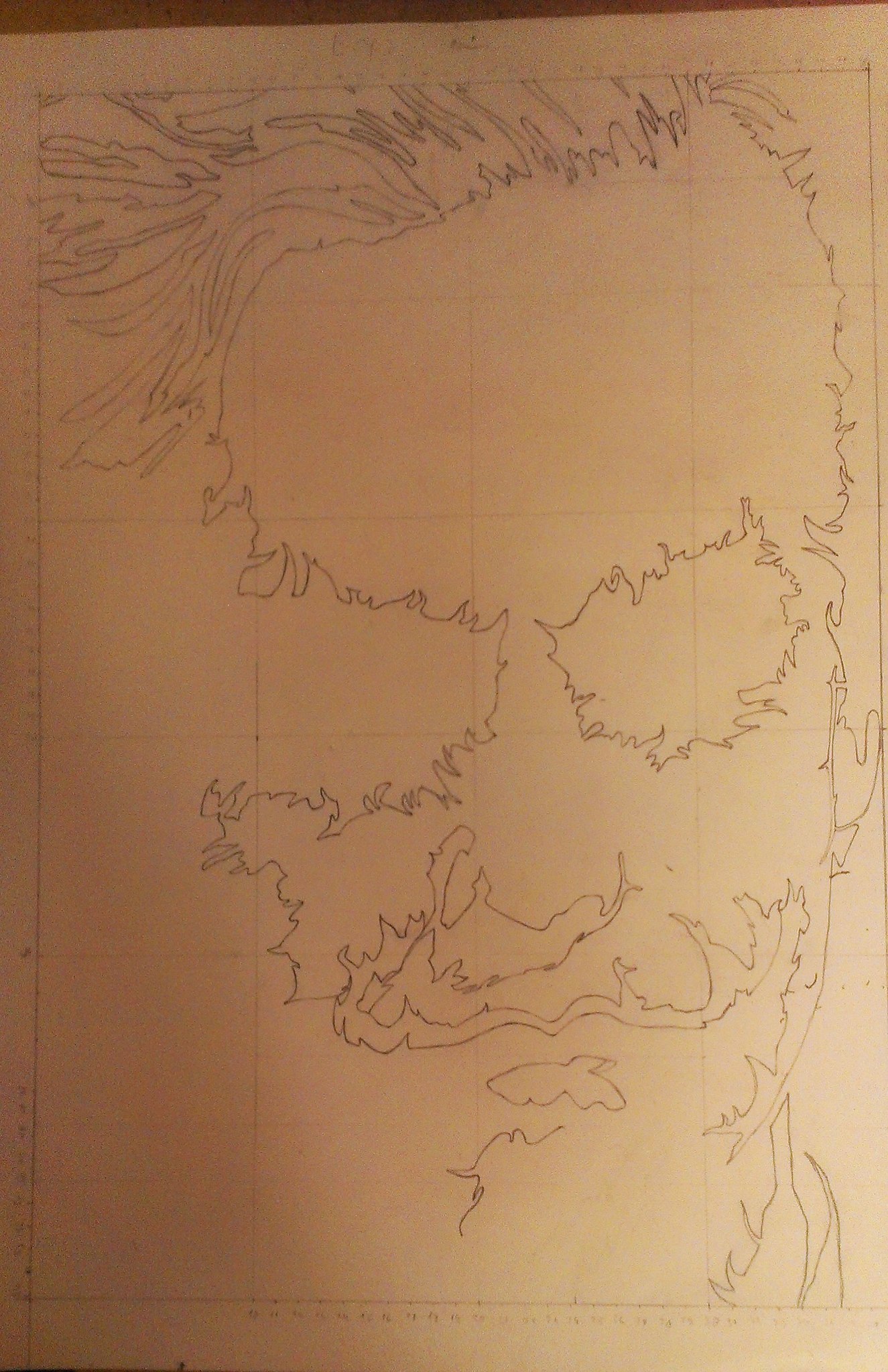 Подогнав в Point.net (не реклама) вырезанную часть из оригинала под нужный мне размер половины ватмана, принялся наносить линии и основные точки согласно их координатам на мониторе. Каюсь, по началу думал что получится Квазимодо перекошенный,