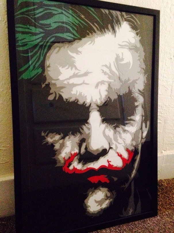 За краски не хотел браться до последнего, не умел и до сих пор не умею с ними работать. Посоветовался со знакомым художником, который проинструктировал в этом плане и подсказал акрил. Сначала волосы, потом губы, потом фон.