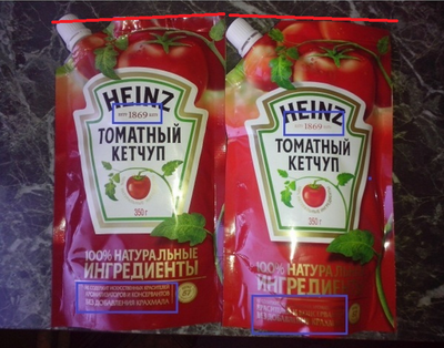Полиграфия упаковки одна и та же. Суть - разные либо краски, либо кто-то накосоручил с настройками смешивания/подачи и т.д. Там разная плотность краски. Очень похожий эффект будет при выцветании. А начинка пакета... привет технологам, у них тоже бывают плохие дни)