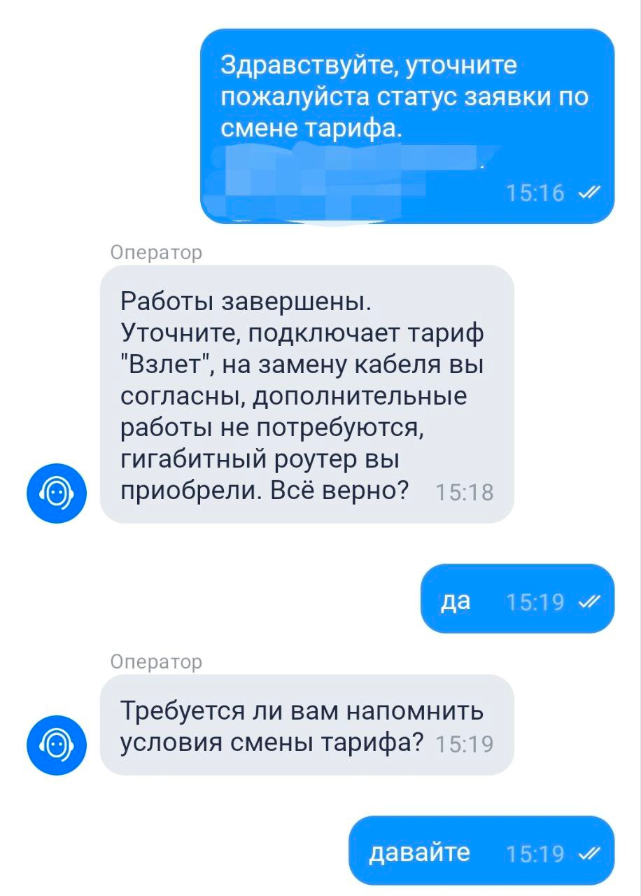 Спустя месяц покупаю современный популярный роутер, пишу в ТП, что сменил роутер и готов к дальнейшим действиям. Далее цитирую: