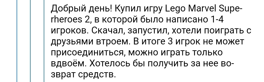 История следующая: любим с друзьями собраться и погонять на ПК или ПС4. Играем минимум втроем, поэтому, единственным условием для нас является возможность играть вместе одновременно. В тот вечер мы как обычно зашли в PS store и начали искать подходящую игрулю, наш взгляд упал на Lego Marvel Superheroes 2, именно на вторую часть, так как количество игроков было указано 4, а в первой части 2.
