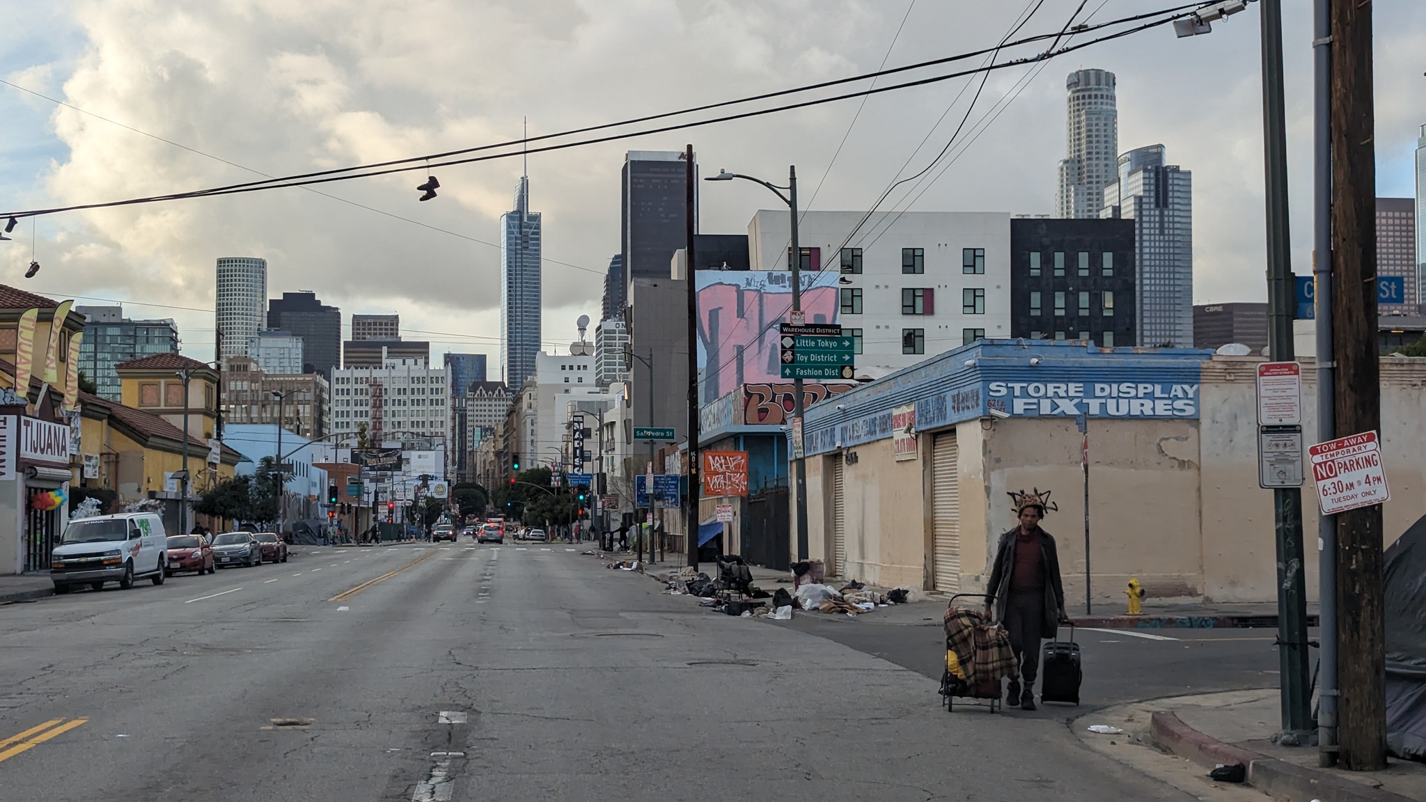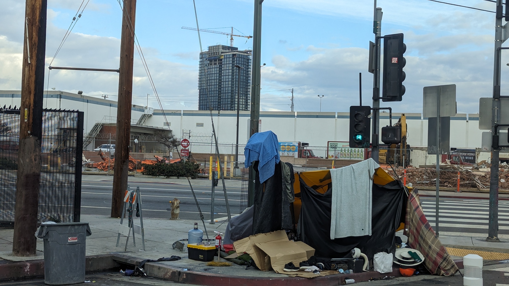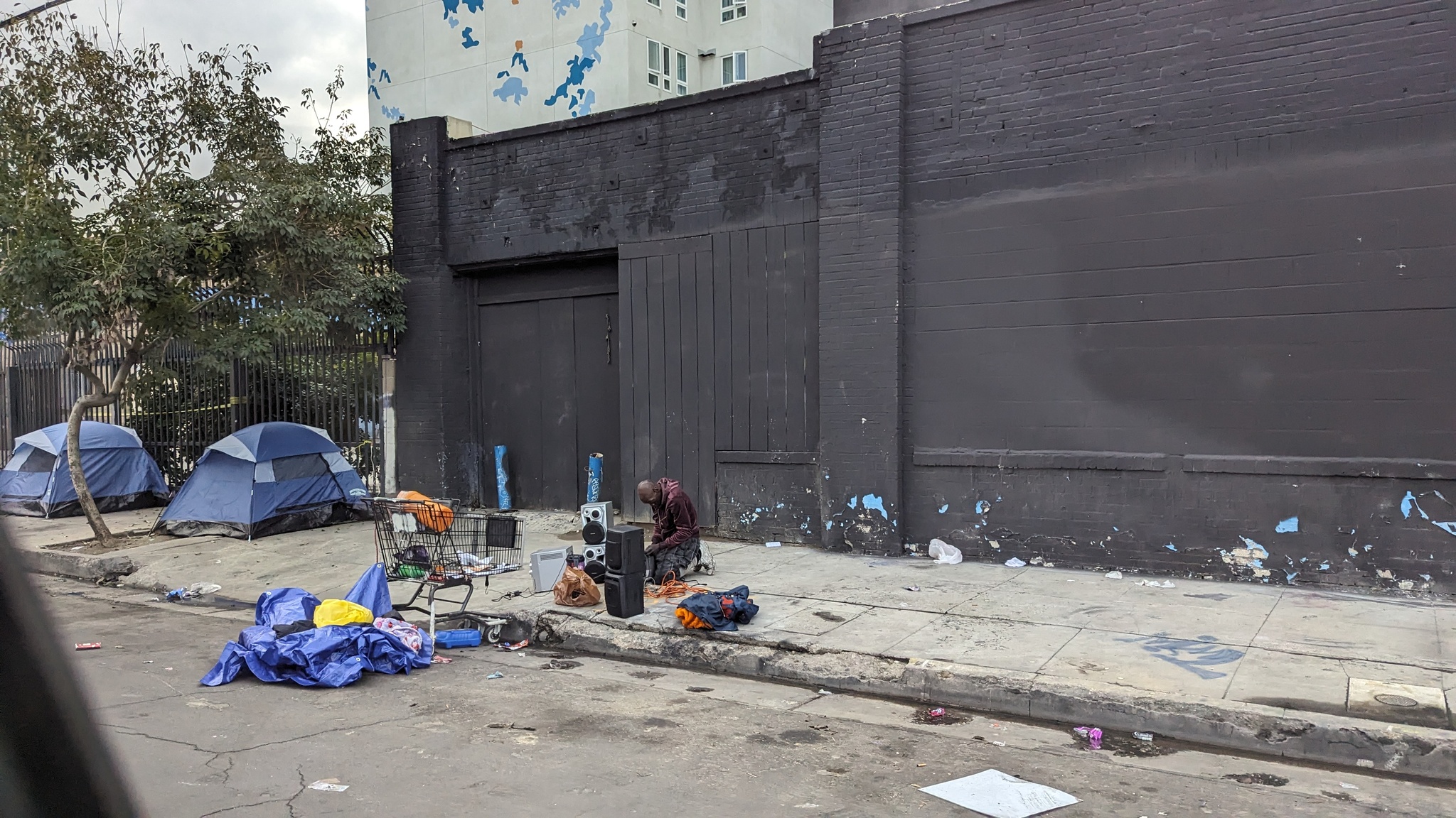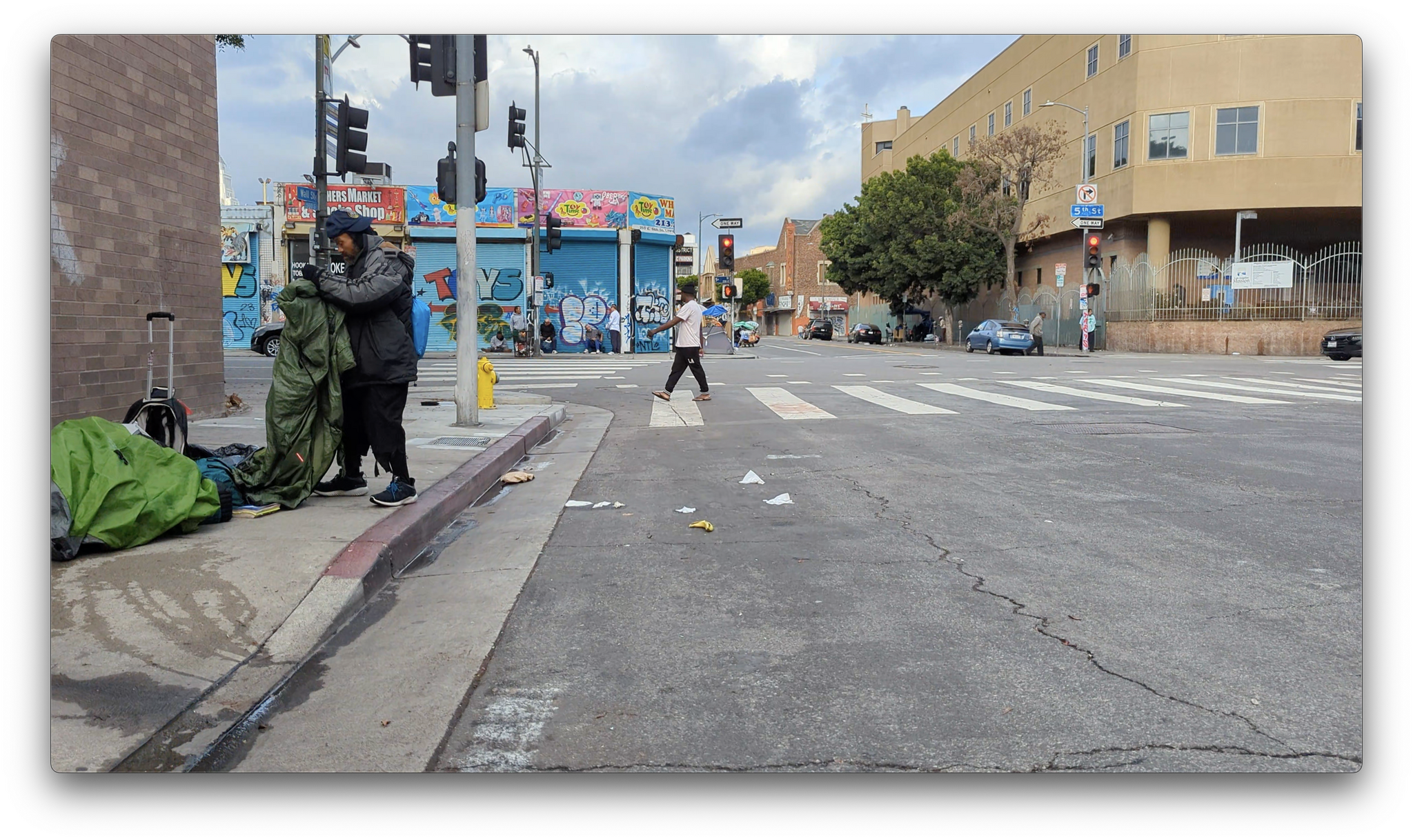 Гугл говорит, в ЛА 75.000 бездомных, на Скид Роу около 20.000. Остальные неравномерно размазаны по всему городу. Действительно, есть программы помощи. Но абсолютное большинство из них борется с последствиями, а не с причинами.