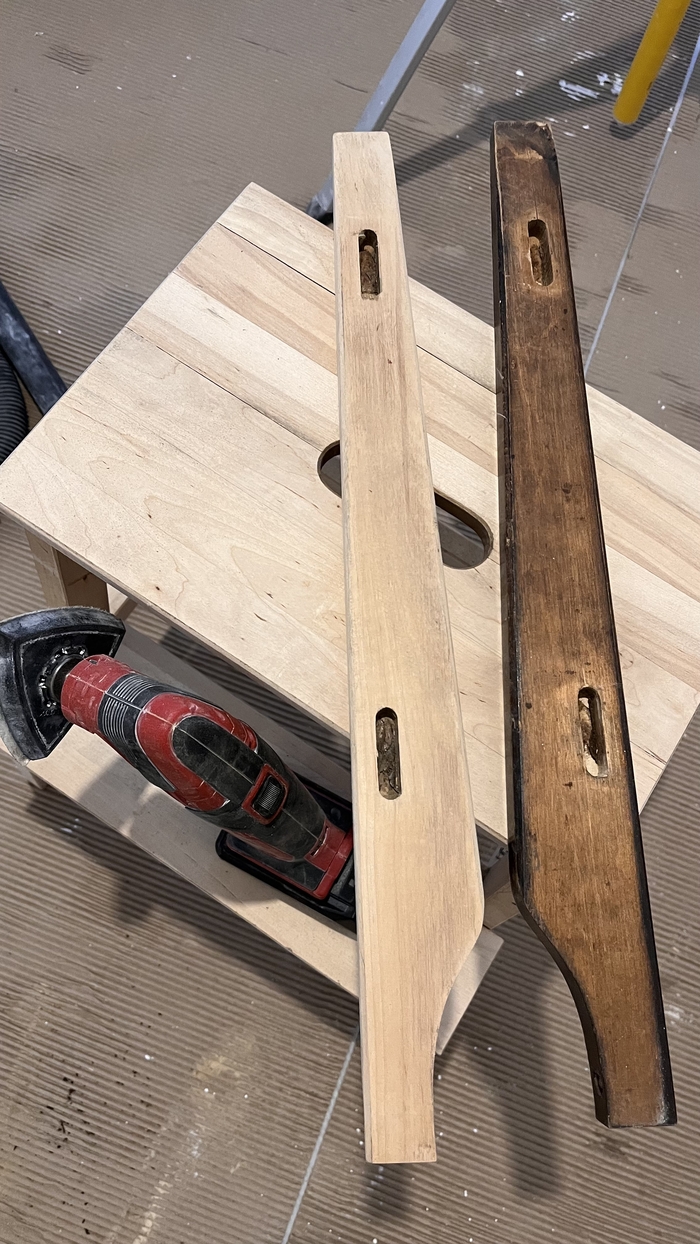 Чтобы отшкурить дерево перед новой покраской, я напросился в гости к знакомым которые делали черновой ремонт дома, и за 4 часа очистил все деревянные элементы от лака и морилки.