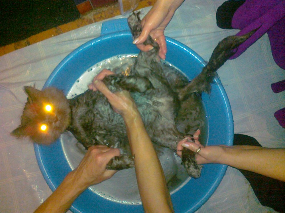вода поступающая в сливной бочок-абсолютно холодная(в это время года даже ледяная),а учитывая что бочок наполняется не моментально,то пару минут животному посидеть в прорубе придется,могу даже предположить,что некрупных особей возможно даже засосет...