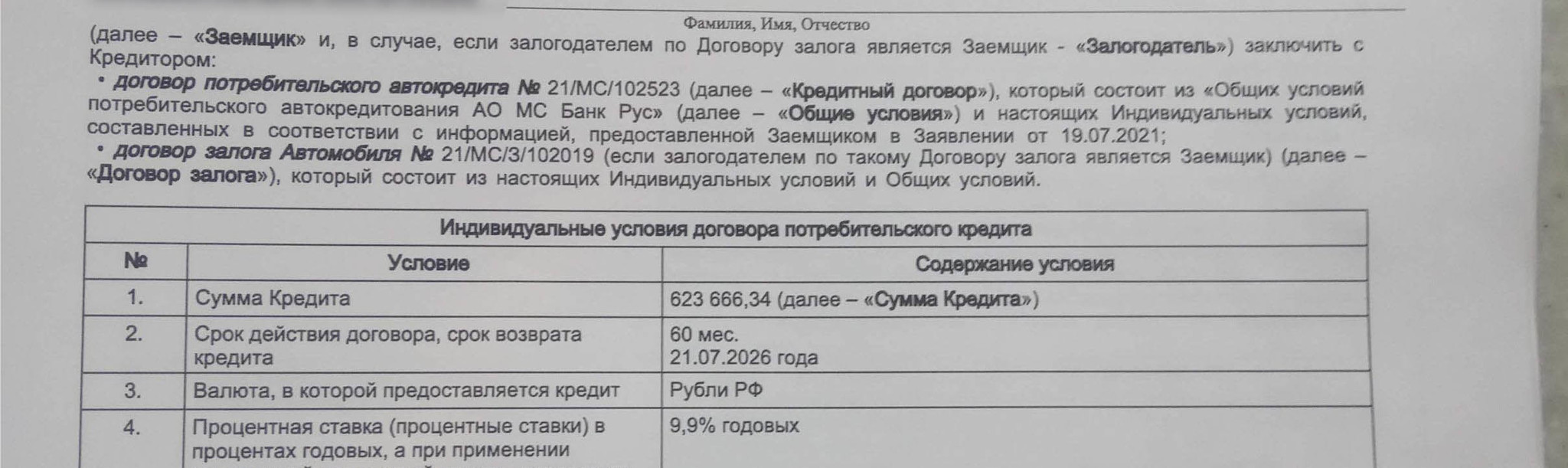 Далее уже из кредитного договора, что у меня на руках.