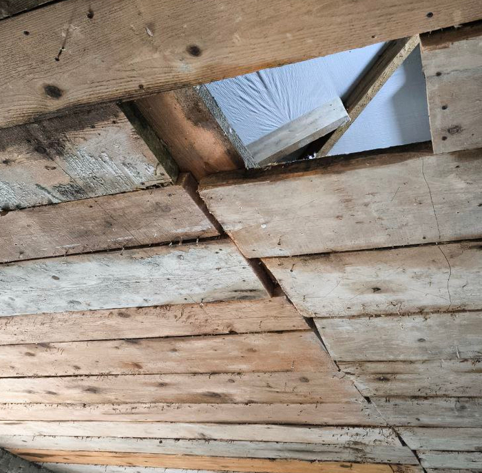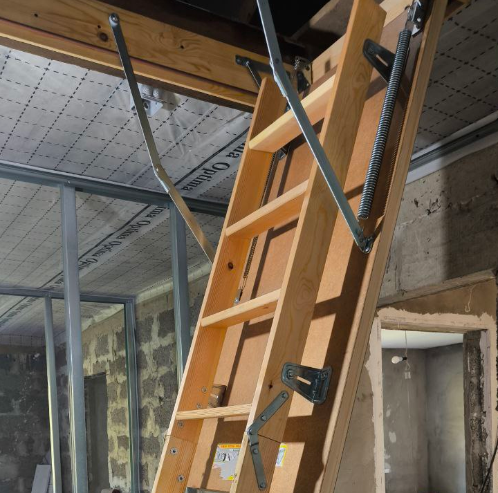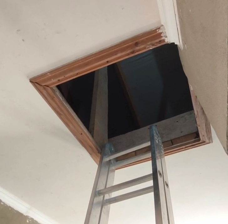 Мы задумали перенести выход на чердак в более подходящее место и поставить для него выкидную лестницу.