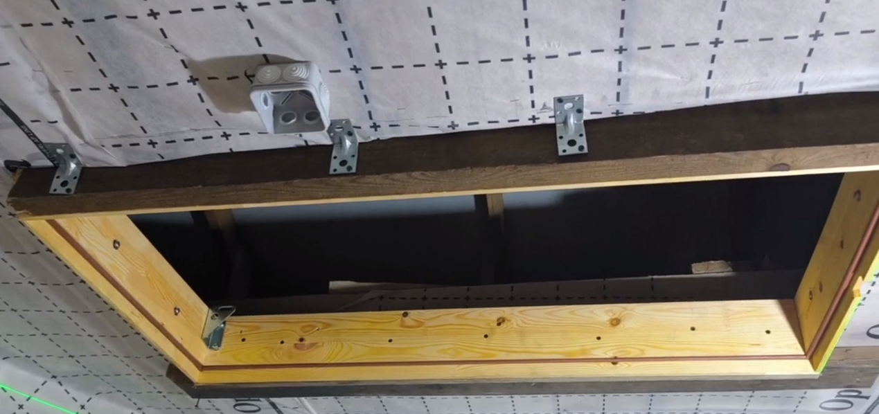 Но самое сложно было - наживить короб в том месте, где он будет стоять. Однозначно в этом помог лазерный уровень, который показывал где должен быть низ короба и бок короба, потому что выравнивать нужно было сразу в трех плоскостях.