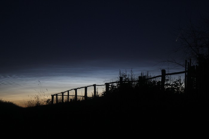 Комета на фоне серебристых облаков: