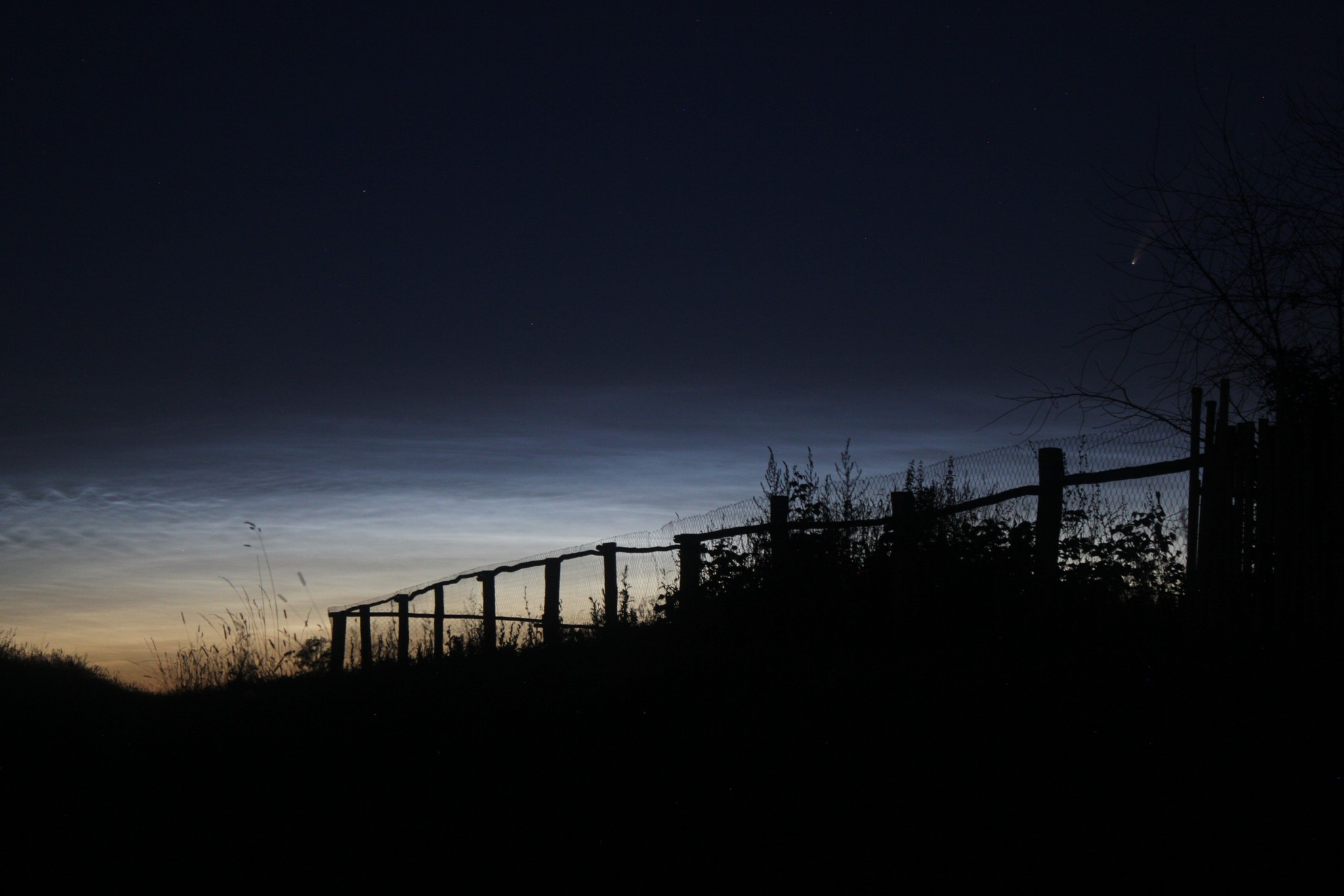 И вот долгожданные деревенские ночи! На небе чудесный коктейль из серебристых облаков, кометы C/2020 F3 NEOWISE, Луны, Юпитера, Сатурна, Марса и Венеры + периодически пролетающая МКС. Видимость Марса всё лучше и лучше, Юпитер вообще практически в противостоянии — красота!