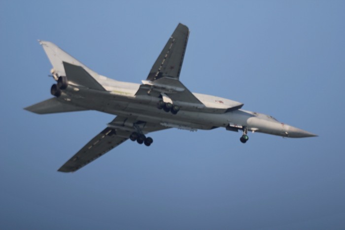 Главное не расслабляться и не получить в глаз искателем:) Первичное наведение на самолёт осуществлялось глядя на объект чуть выше искателя, как будто это мушка ружья. В итоге, особо крупные экземпляры еле влезали в кадр и мне очень повезло, что из трёх кадров, в один ТУ-22М поместился таки полностью: