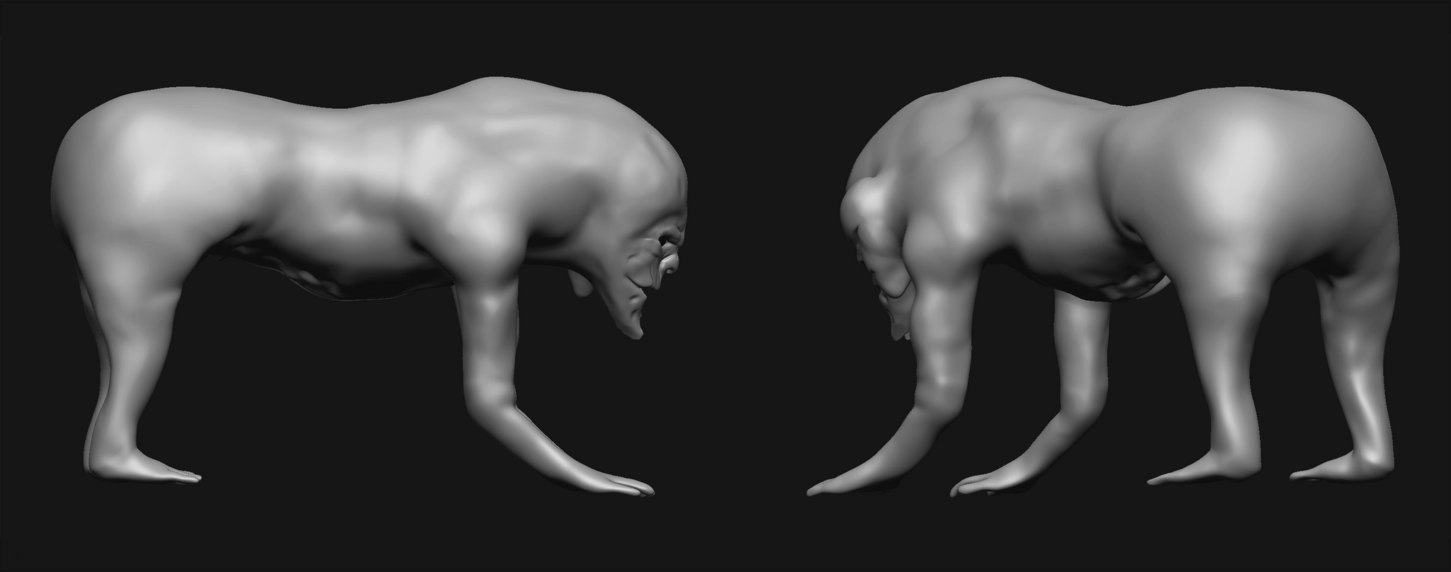 Началось всё с ужасного осознания того, что если анатомию человечью я знал хоть как-то, то вот анатомию животных не знал от слова совсем, поэтому, распечатав фото и прилепив его на клей момент к монитору (оно до сих пор радует мне глаз), я приступил к бесстыдству и уродованию цифровой глины xD