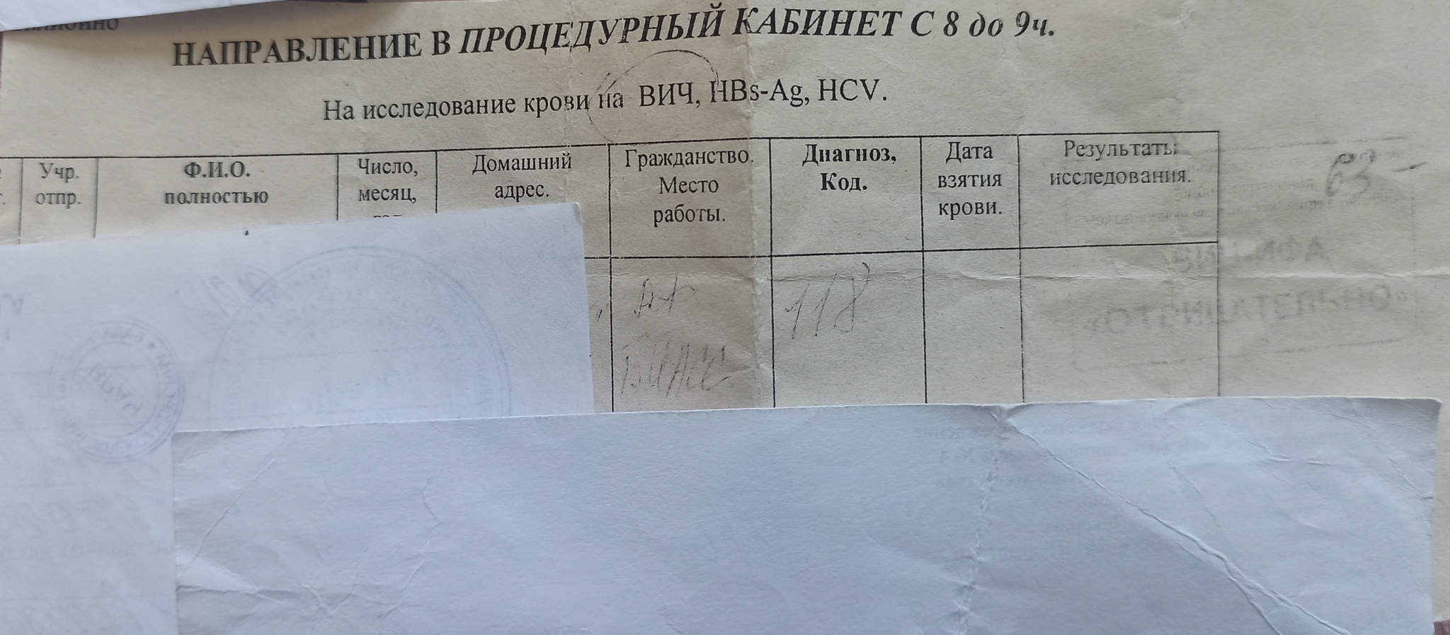 Вопросы продолжались в духе, а почему не в отпуске бы вам это сделать? А зачем именно к нам? Я смущённо отвечал, что как то прошляпил момент в отпуске и теперь вынужден воспользоваться услугами местной медицины. Вы же делаете проверку на ВИЧ?