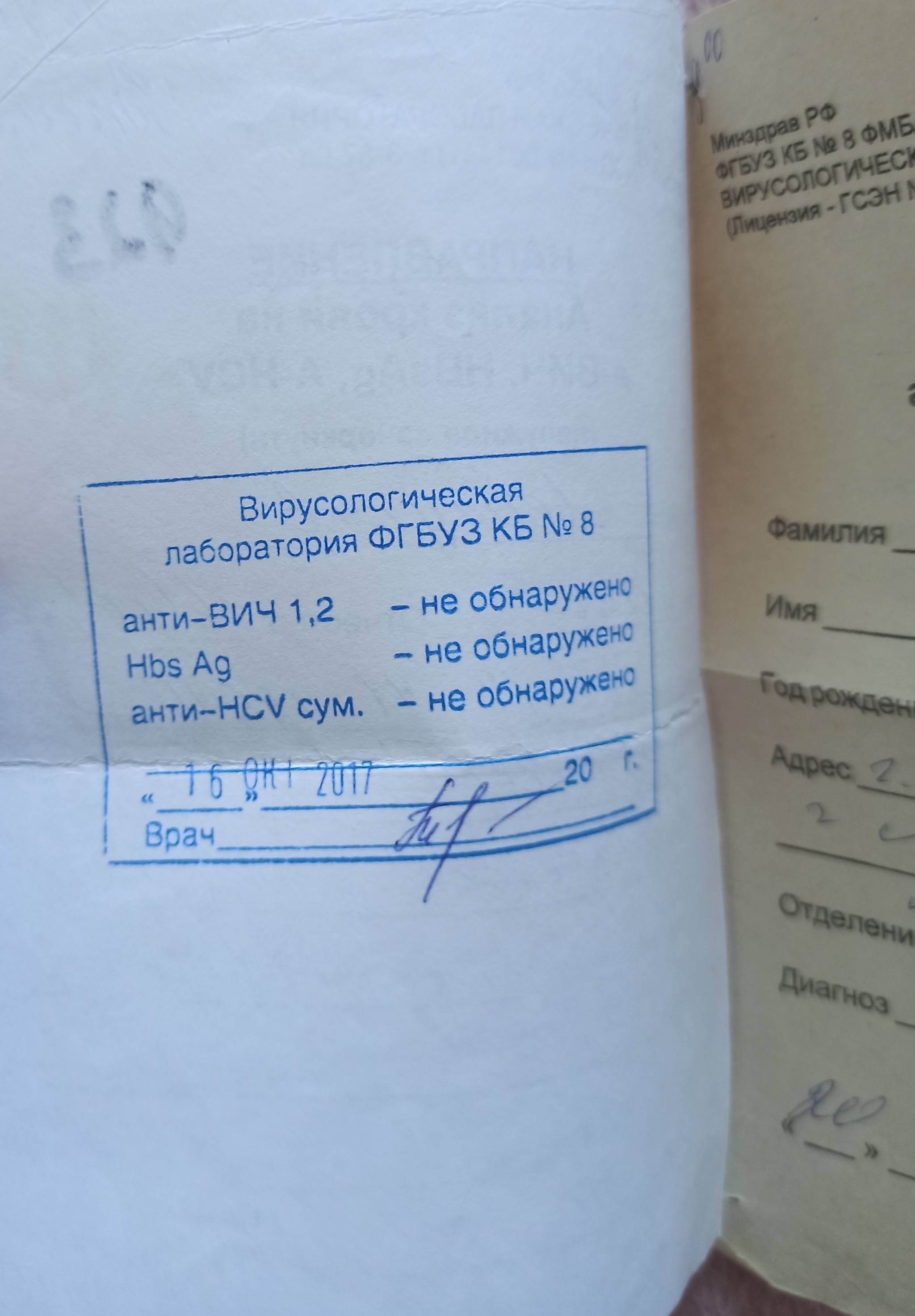 Потом ещё полгода ждал пока закончится период "серологического окна" чтобы сделать обычный ИФА тест который уже со 100% вероятностью покажет заразился или нет. Сдал - результат отрицательный. Сдавал бесплатно в больнице по месту жительства.Врачи в "ВИЧ кабинете" на мое обращение отреагировали очень положительно, похвалили, называли ответственным, вежливо общались, все было конфиденциально.