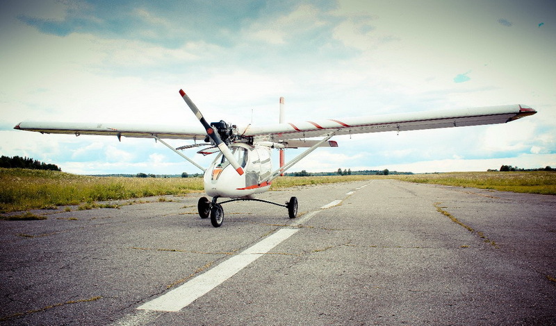 Сев в самолет (посадка самолета мотоциклетная, т.е. рядная), на заднее сиденье получил четкую команду: "не хвататься за органы управления", держаться только за "ферму" - вертикальную дюралюминиевую трубу несущей рамы. Надо уточнить, что эта модификация самолета была учебно-тренировочной, т.е. все абсолютно органы управления и навигации были продублированы. Начав разбег по ВПП (взлетно-посадочная полоса), самолет начал издавать довольно страшные звуки (страшно только в первый раз) - он начал хрустеть (т.е. деформироваться от нагрузок самолета). Самолет был сделан почти целиком из стеклопластика, основанного на эпоксидной смоле (если будет интересно, в будущем постараюсь поподробнее описать технологию), данный материал имеет очень высокие физико-механические свойства, но при изменениях нагрузки начинает "хрустеть" - этот звук был и слышен. Неподготовленному человеку становится довольно страшно, что он вот-вот развалится (самолет). Что очень интересно, по сравнению с гражданской авиацией, перегрузки и ускорение борта на таких малых скоростях чувствуются, я бы сказал, гораздо больше. При наборе высоты (около 3 м/с), чувствовалась на тот момент ощутимая перегрузка))
