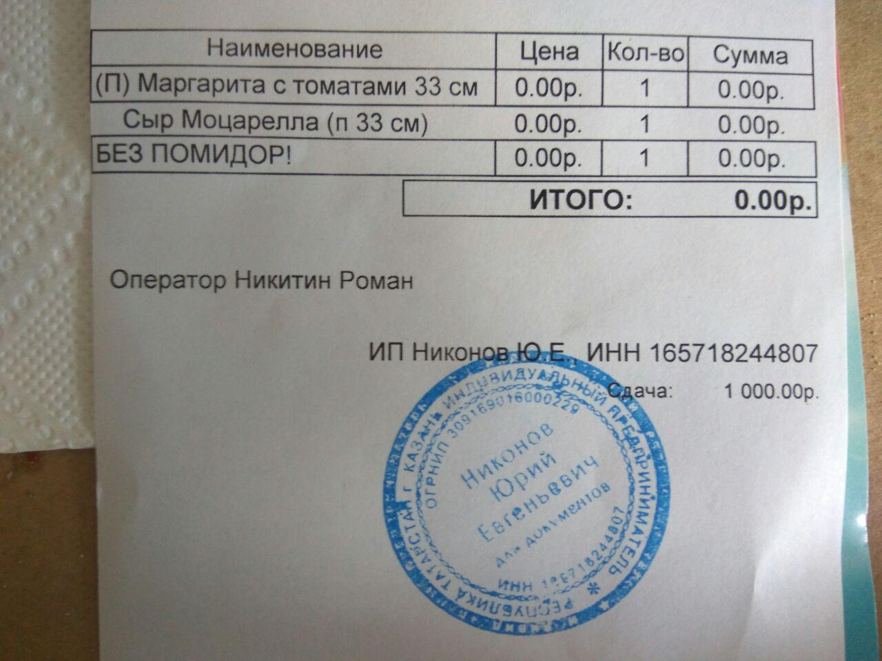 Живу в Казани. Недавно у девушки был день рождения, и мы решили заказать пиццу на пышном тесте, к тому же на ДР была скидка 10%. Мы выбрали пиццу Маргарита, но так как пиццерия не везет заказы дешевле 450 рублей мы выбрали дополнительный сыр за 75 рублей и соус как в маке, чтобы добить до нужной суммы. Девушка не любит помидоры, поэтому попросили помидоры не класть.