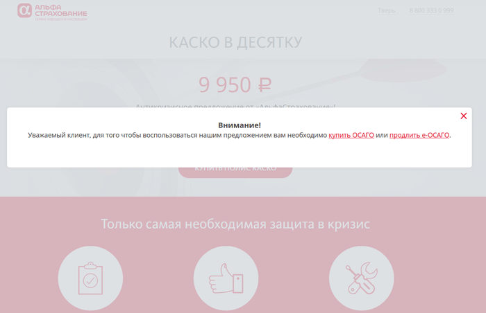 - Секунду, сейчас проверю, - отвечает оператор. - Да, на сайте это сделать нельзя, его можно приобрести, только если наша компания сделала вам предложение на покупку данного полиса.