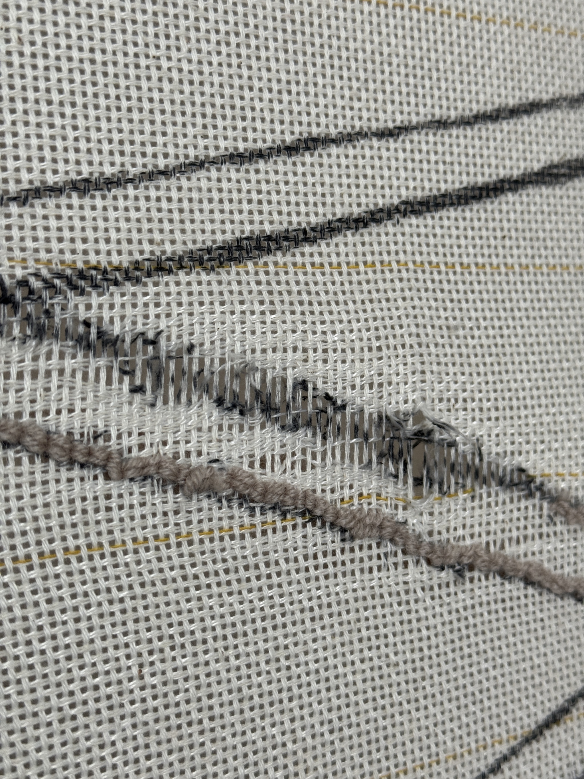 Когда все было готово, я не теряя надежды успеть в еще более сжатый срок, начинаю забивать ковер. И тут меня ждет очень не приятный сюрприз. Пистолет начинает резать ткань на диагональных линиях.