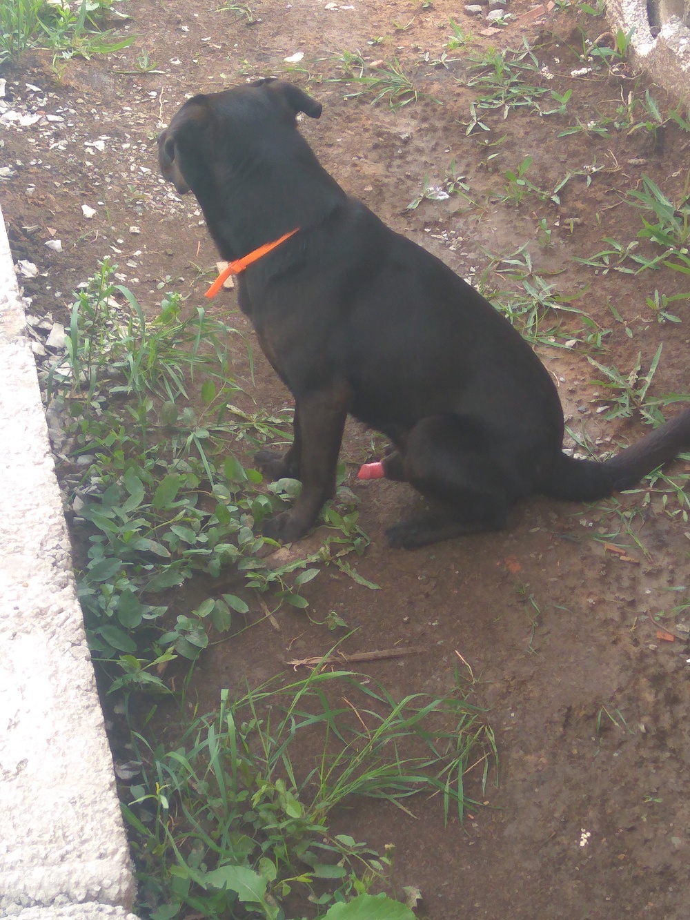 А как то раз к нам домой пришли друзья с большой чёрной собакой, её я тоже хотел накормить....