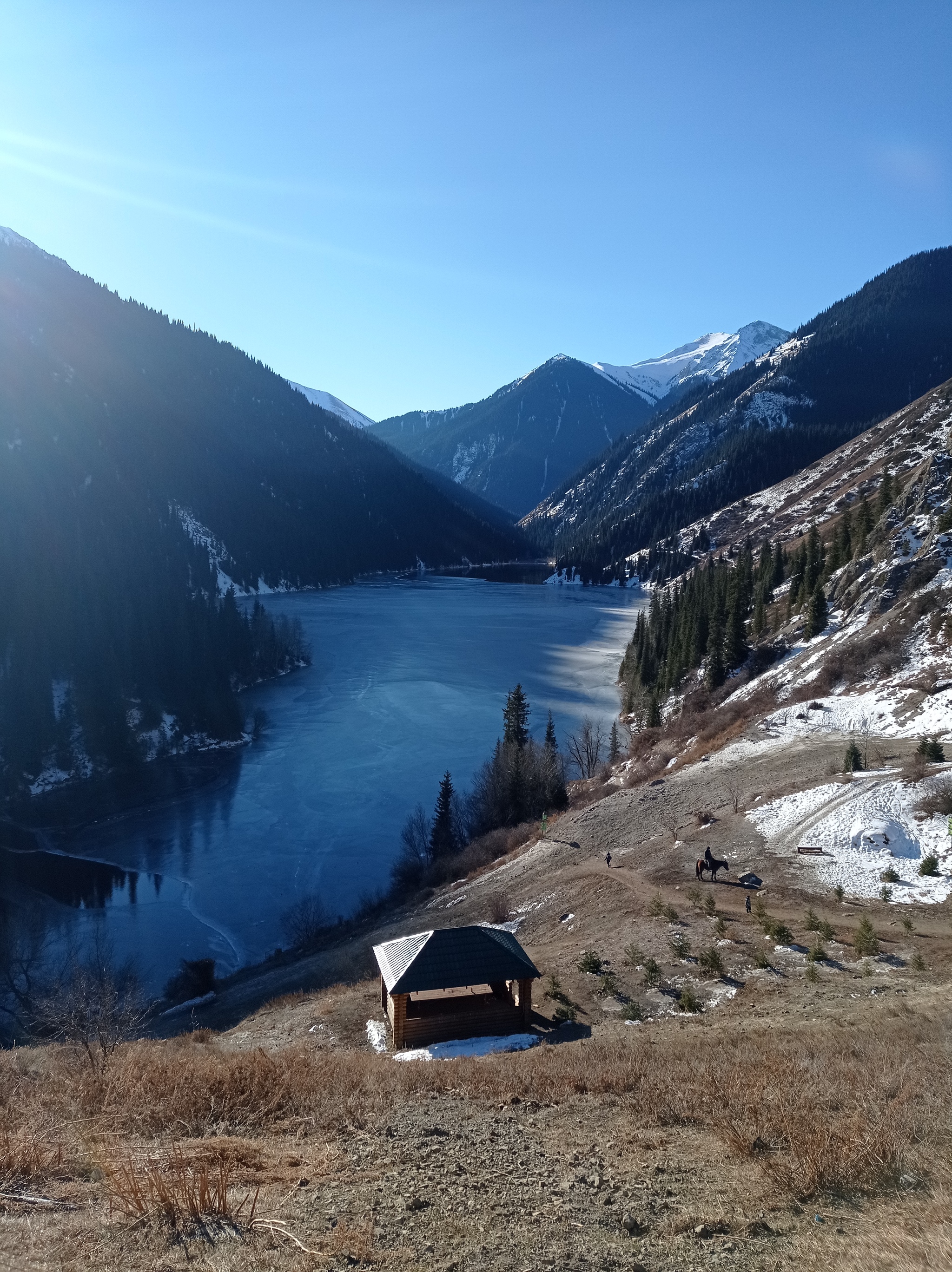 Был там в декабре когда в Алматы уже лежал снег в каньоне было около +10 градусов,в марте уже бродили по не нему в майках и мечтали о холодном пиве,странно что никто не поставил палатку внизу с ледяным пивом,уверен покупали бы за любые деньги.